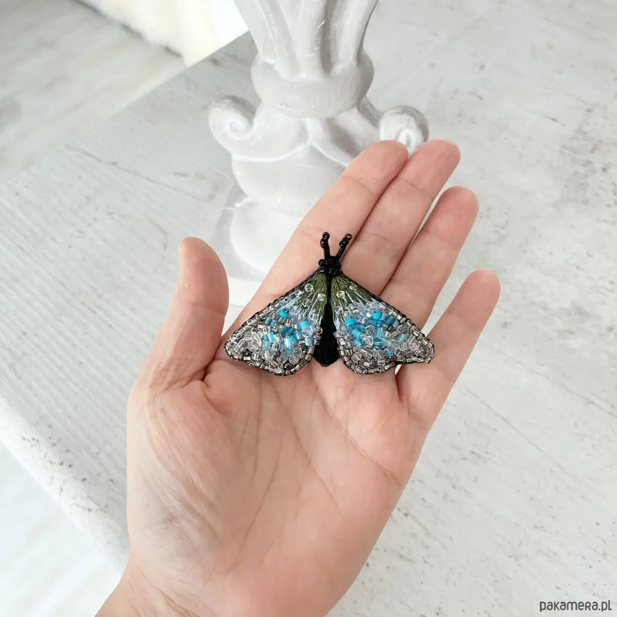 Broszka ĆMA 12 ręcznie haftowana przypinka owady motyle