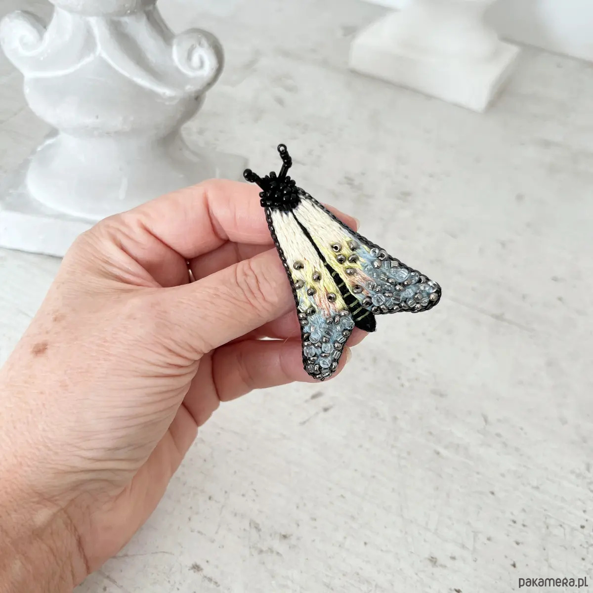Broszka ĆMA 13 ręcznie haftowana przypinka owady motyle
