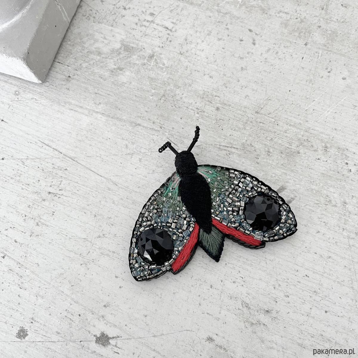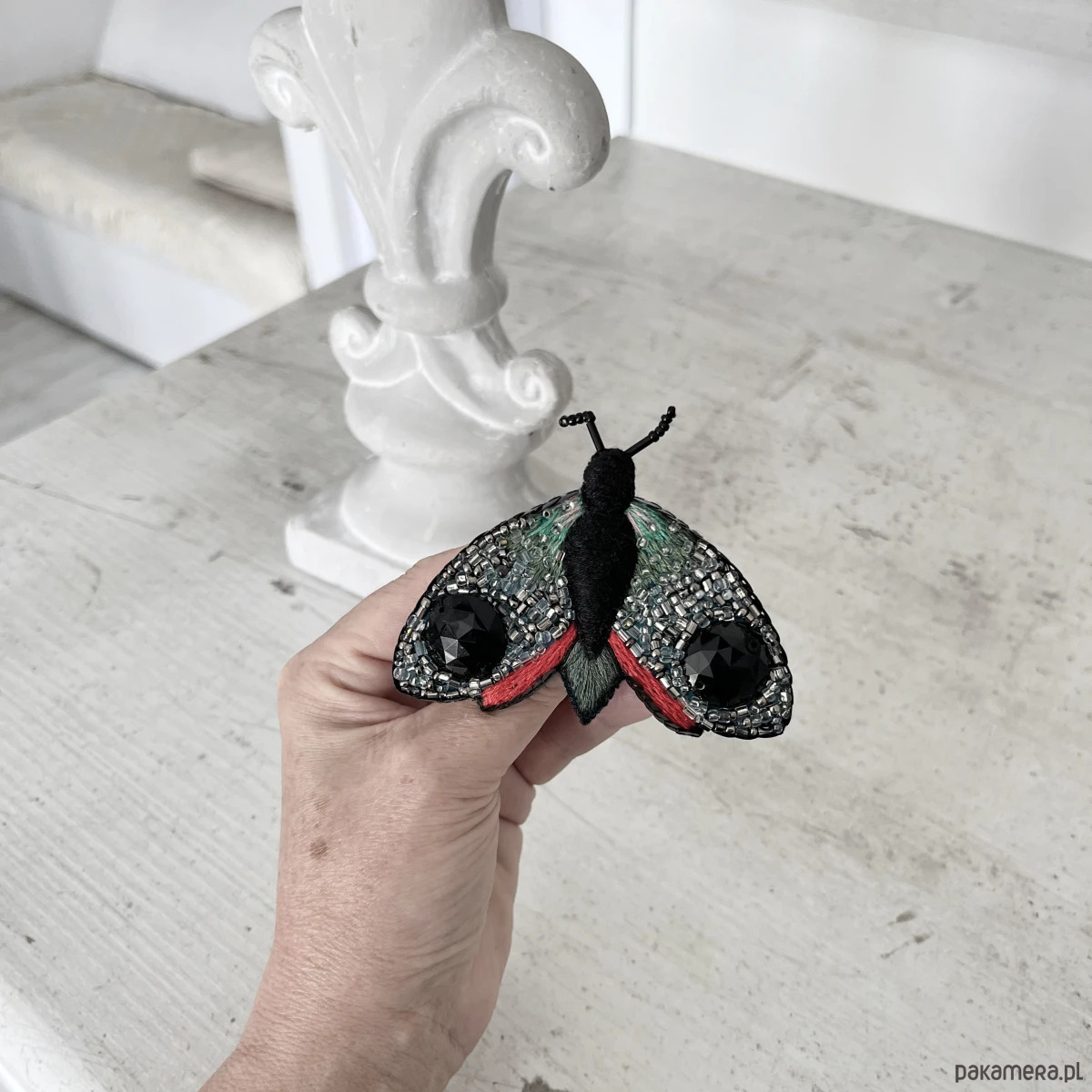 Broszka ĆMA 18 ręcznie haftowana przypinka owady motyle