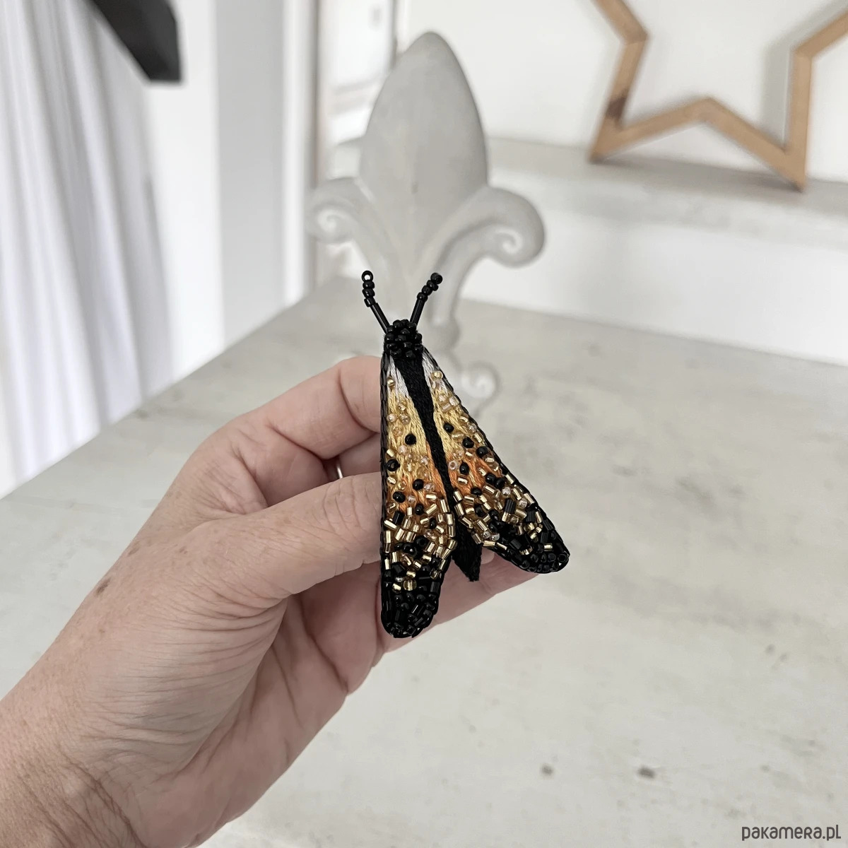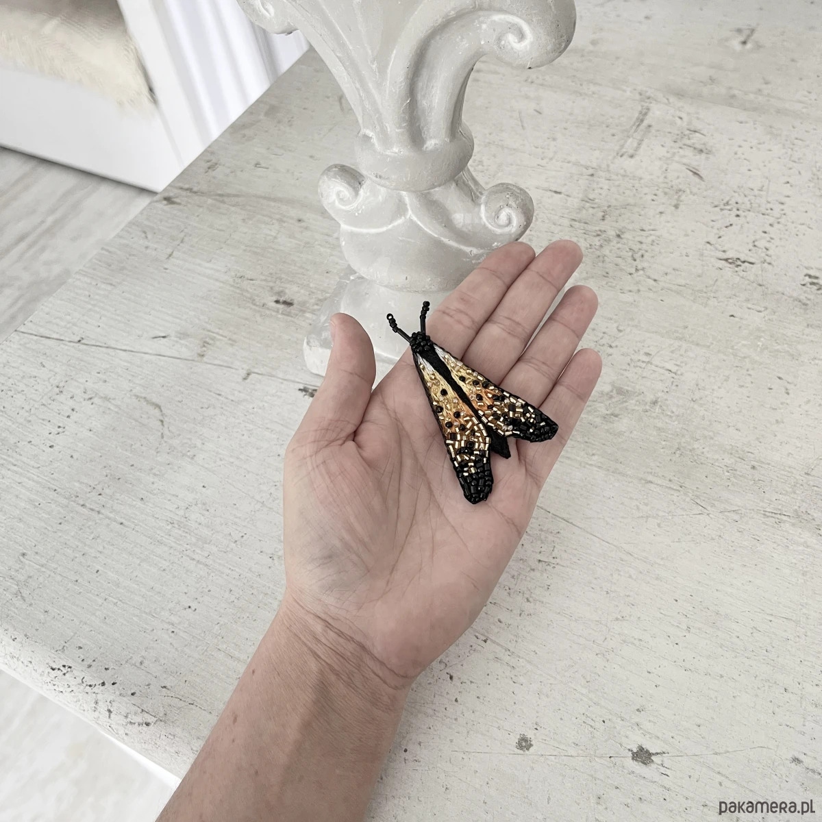Broszka ĆMA 19 ręcznie haftowana przypinka owady motyle