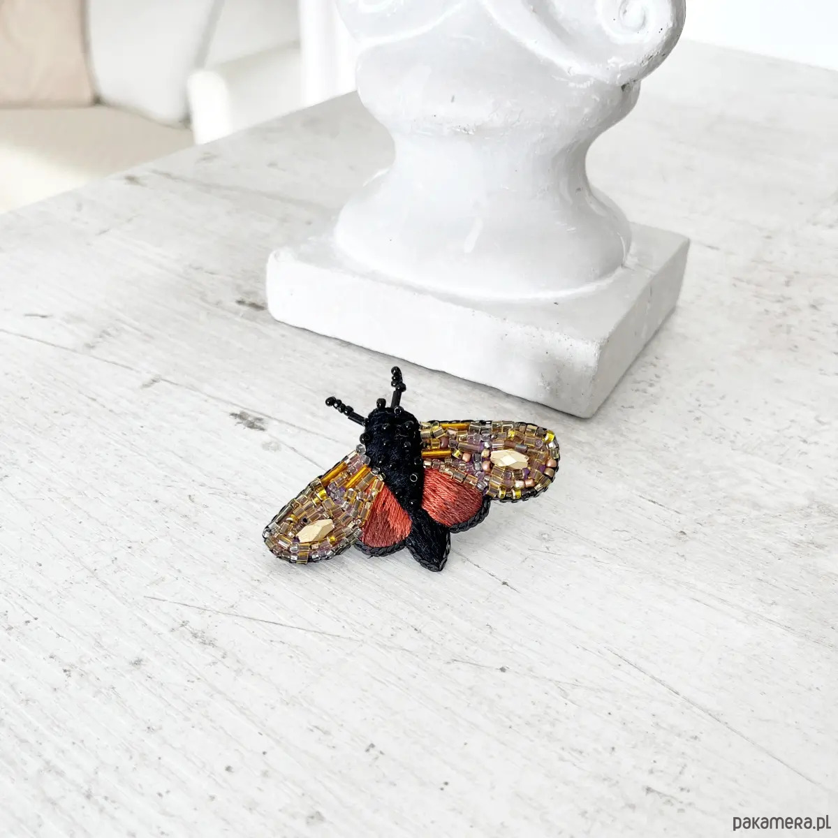 Broszka ĆMA 19 ręcznie haftowana przypinka owady motyle