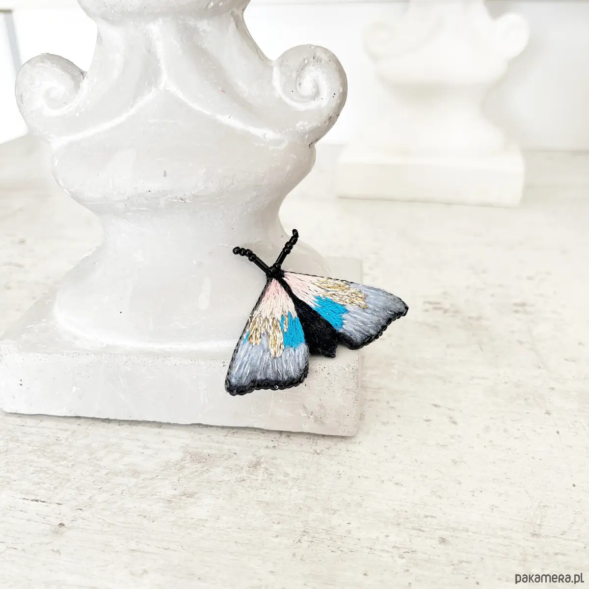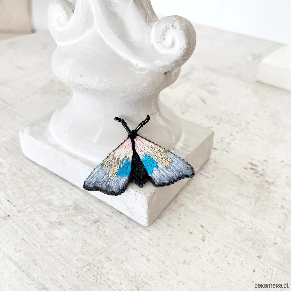 Broszka ĆMA 21 ręcznie haftowana przypinka owady motyle