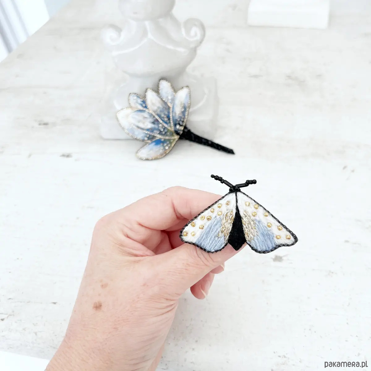 Broszka ĆMA 4 ręcznie haftowana przypinka owady motyle