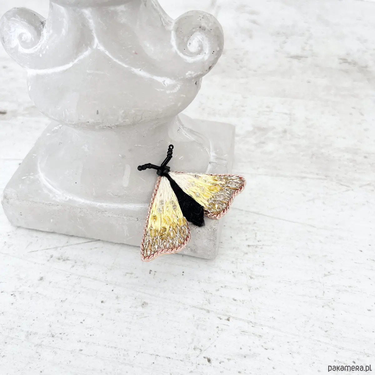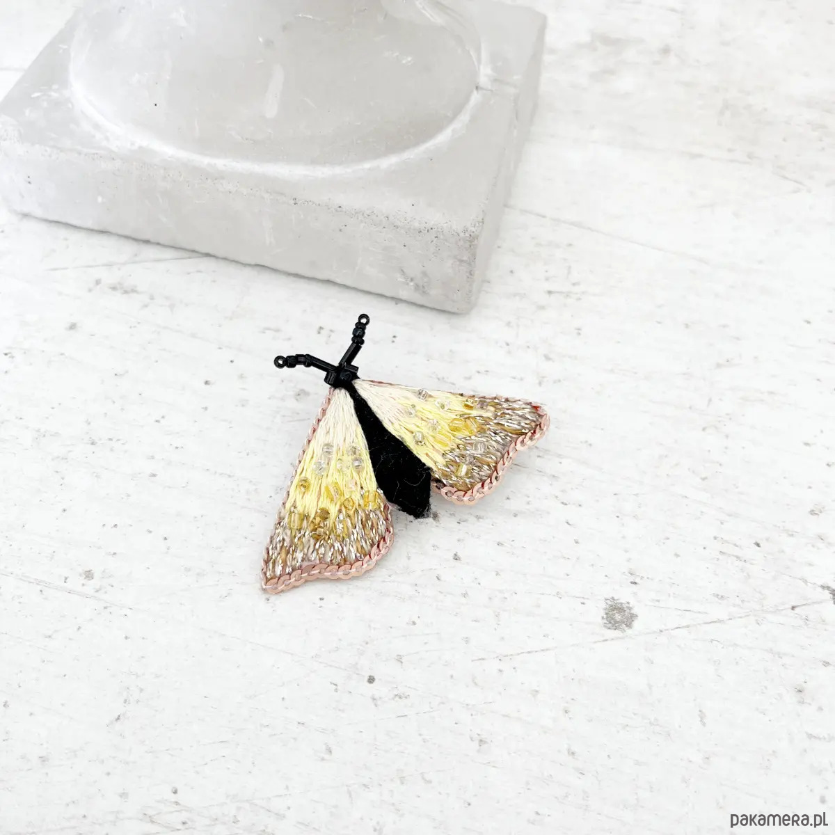 Broszka ĆMA 5 ręcznie haftowana przypinka owady motyle