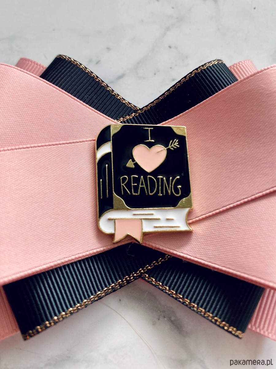Brosza z delikatną ozdobą w stonowanych kolorach dla wszystkich, którzy kochają czytać!