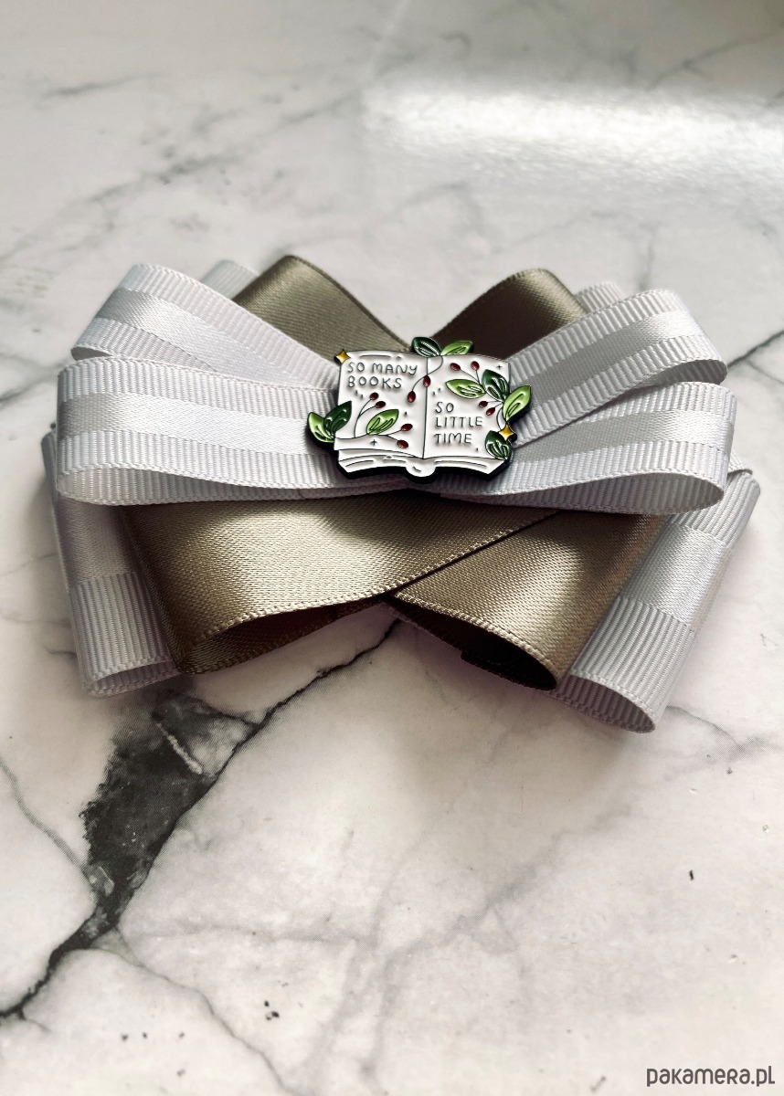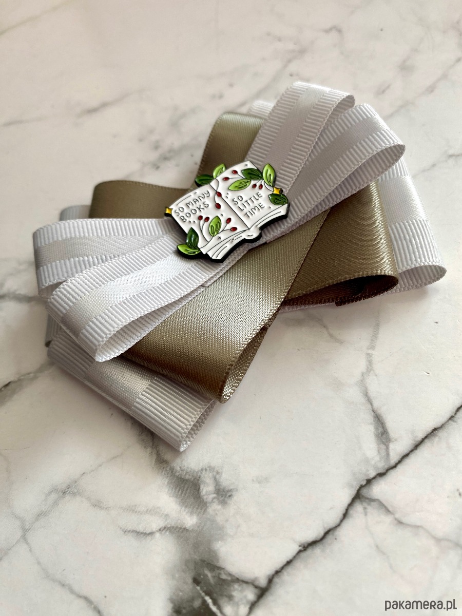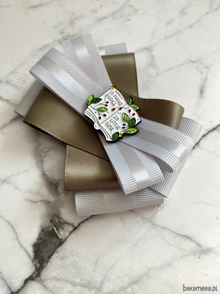 Brosza z delikatną ozdobą w stonowanych kolorach dla wszystkich, którzy kochają czytać!