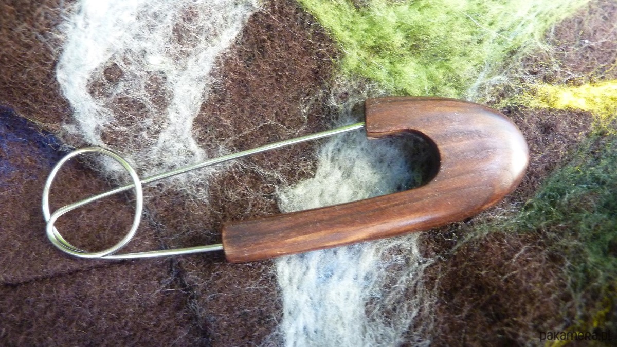 Agrafki wykonane z różnych gatunków drewna. W różnych kolorach, czarnym, czerwonym, zielonym, niebieskim lub niewyraźnym kolorze drewna.