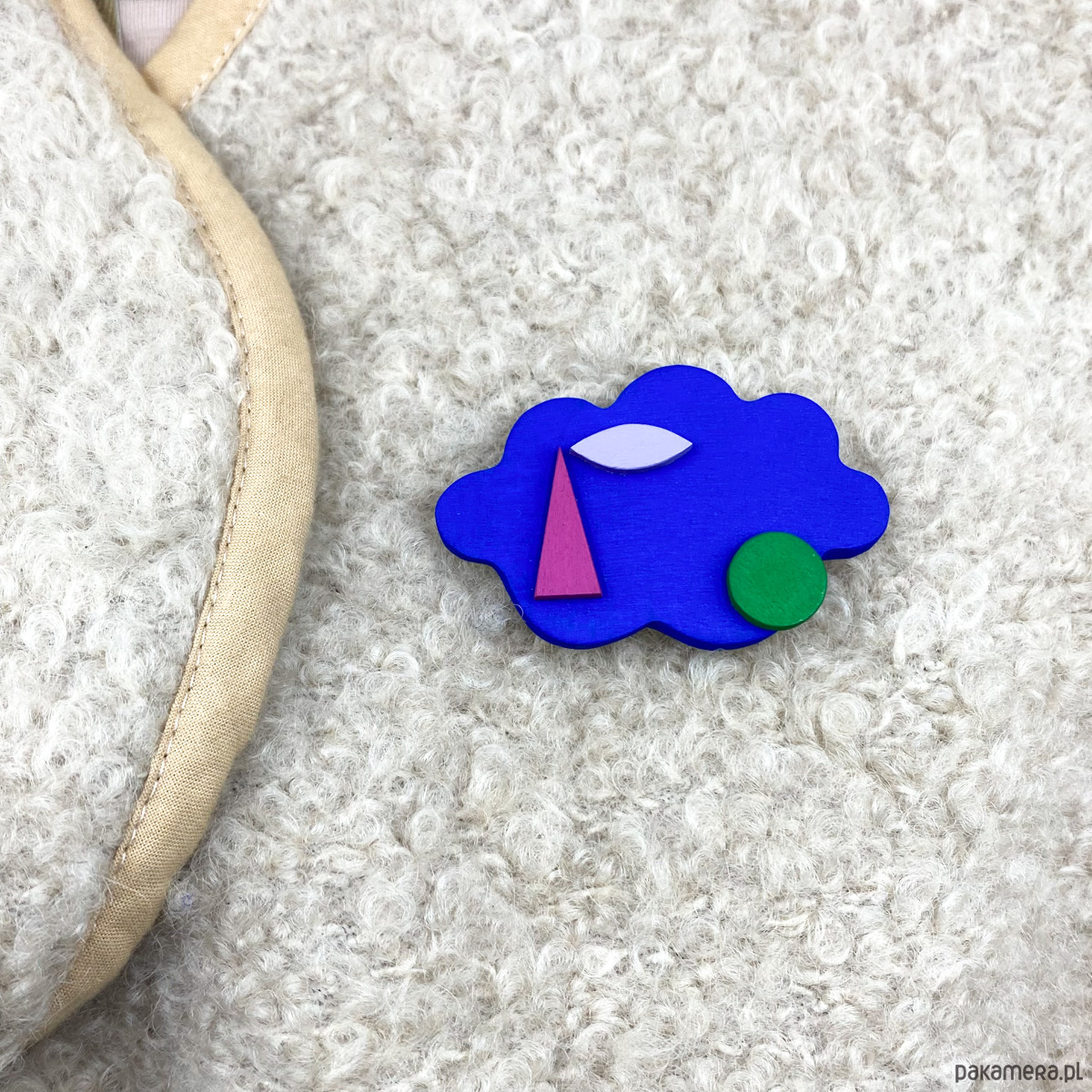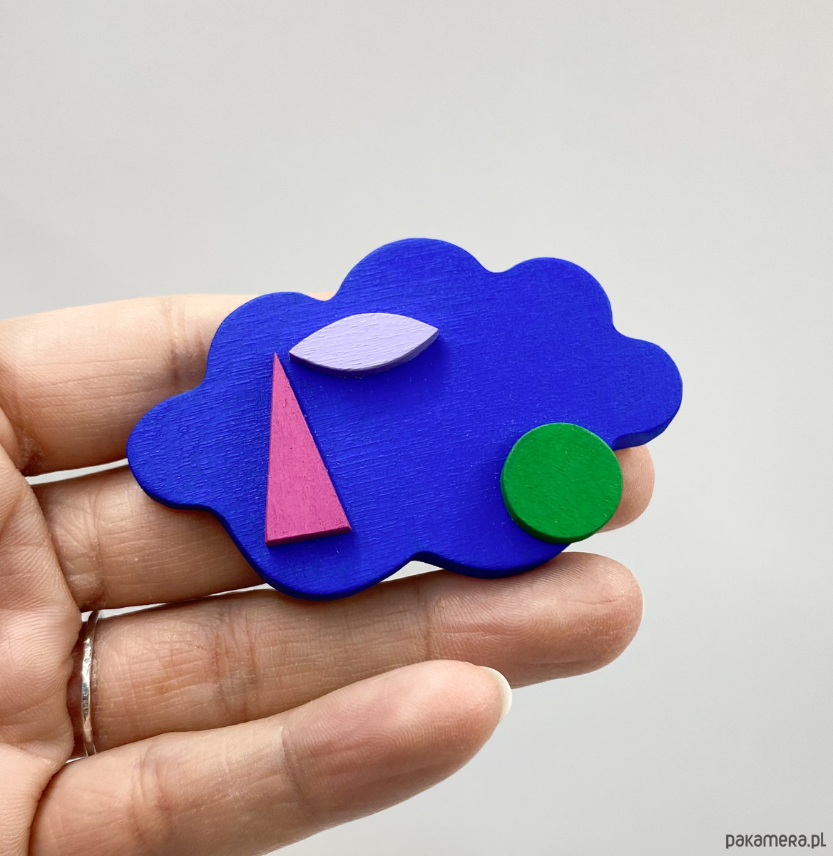 Broszka drewniana - Kobaltowa Chmurka