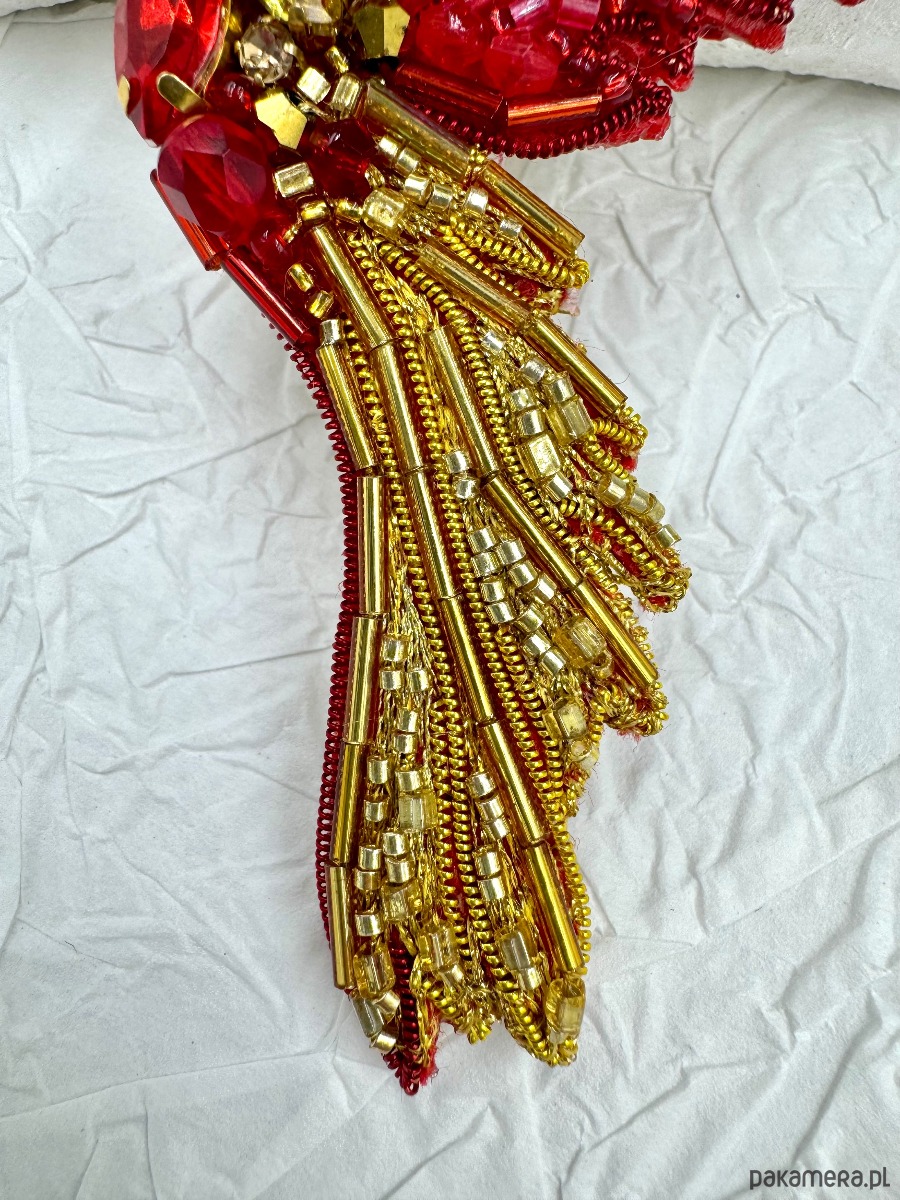 Każdy element został dopracowany z dbałością o najdrobniejsze detale. Połączenie połyskujących kryształów, drobnych koralików i precyzyjnego haftu sprawia, że Feniks przyciąga wzrok i dodaje pewności siebie w najbardziej wyjątkowych momentach.
