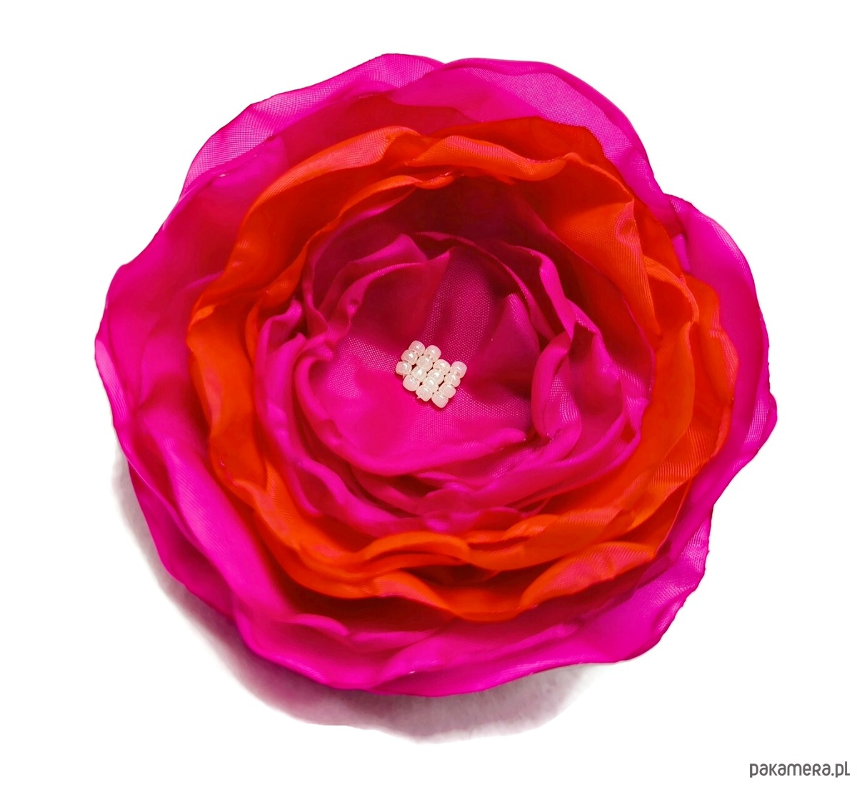 Broszka fuksja z czerwienią 10cm kwiat na prezent