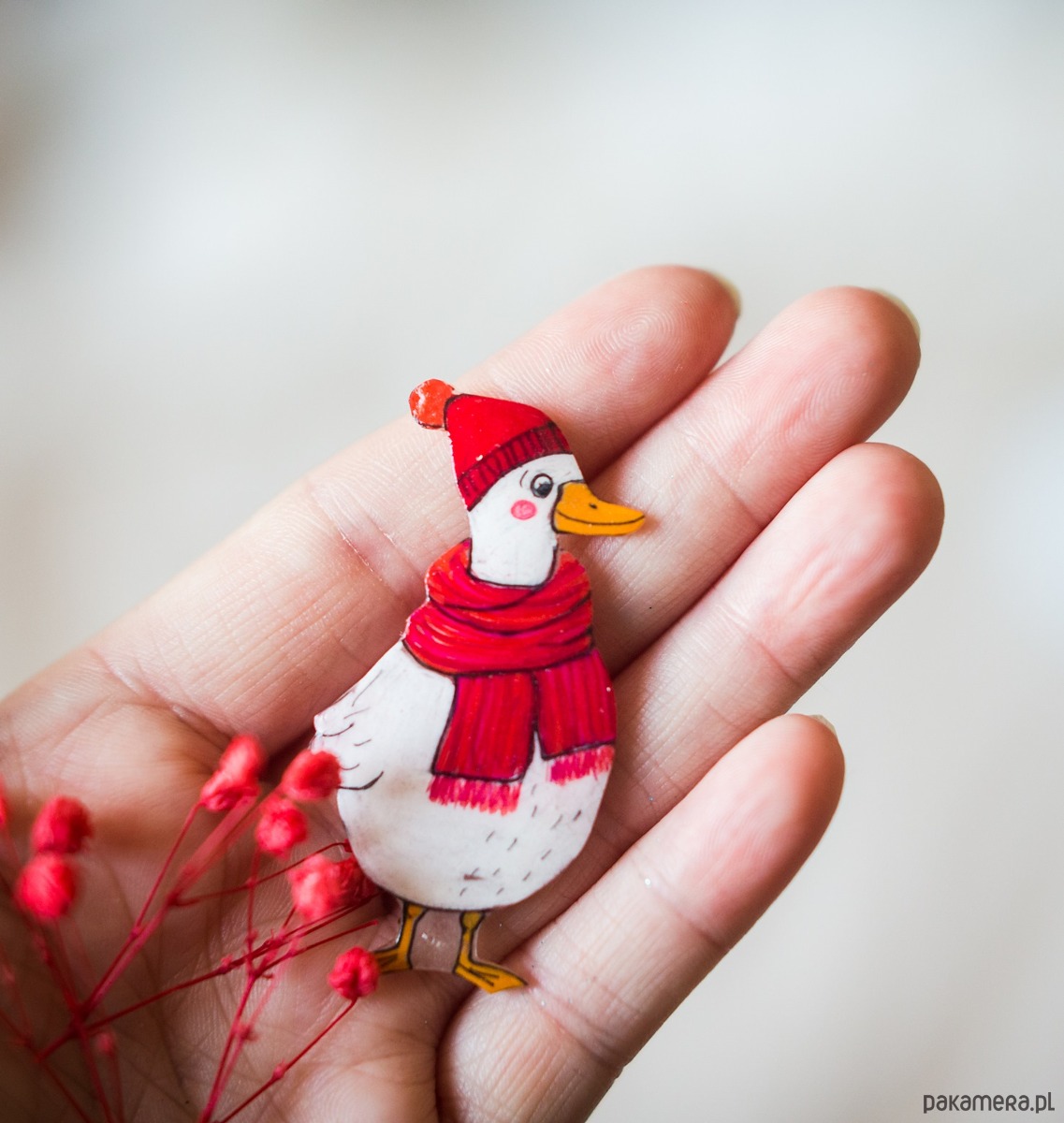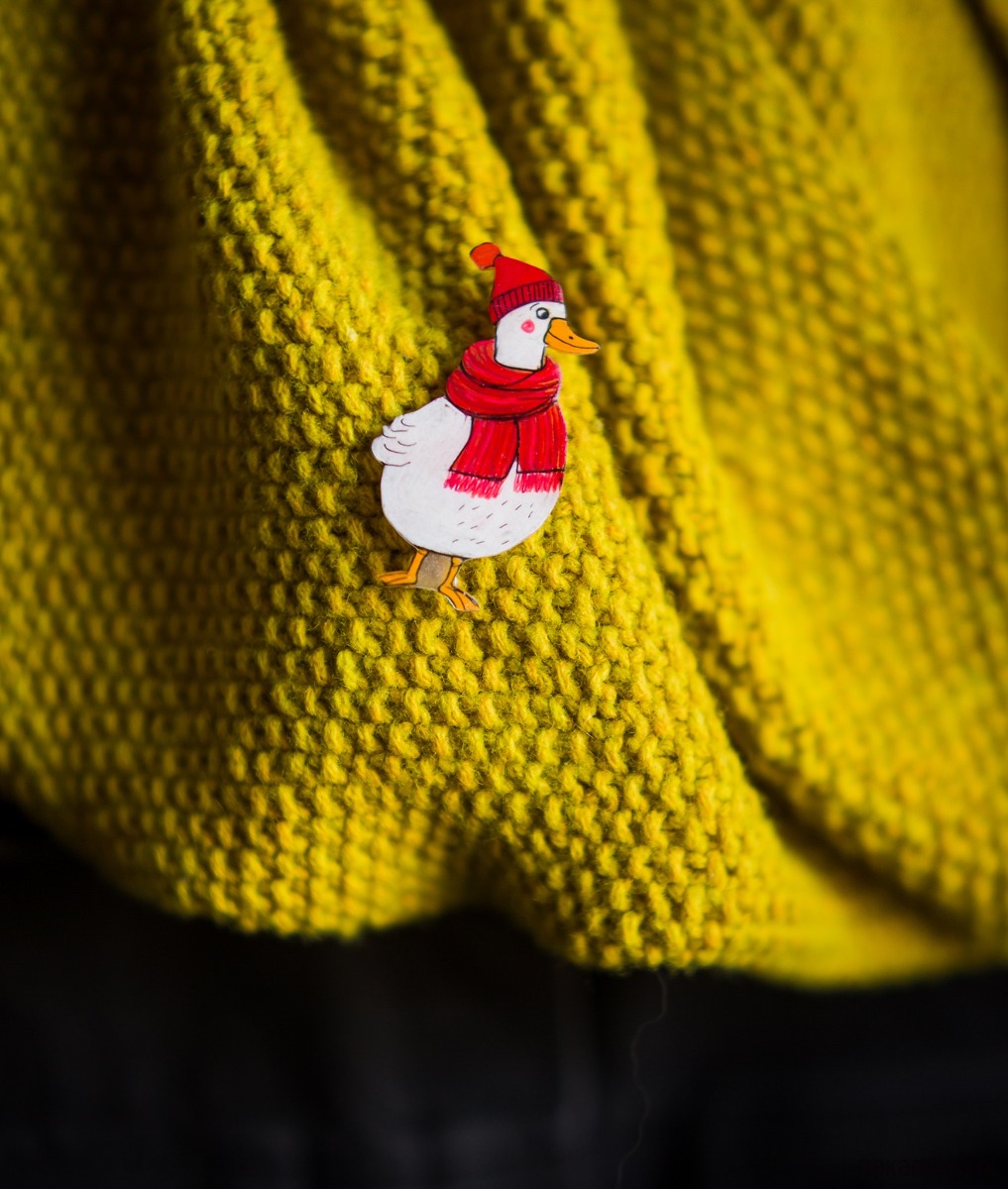 Broszka z białą gąską to odjazdowy dodatek do codziennego ubrania.