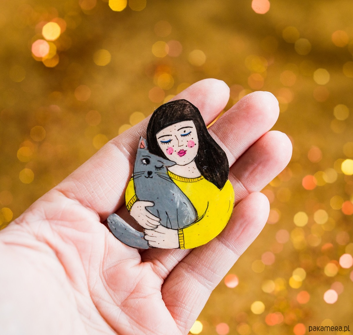 Ręcznie rysowana, urocza broszka Hanki z szarym kotem Popiołkiem – pełna ciepła i niepowtarzalnego charakteru. Każdy egzemplarz tworzony jest odręcznie, dzięki czemu kotek o miękkim, popielatym futerku nabiera wyjątkowego wyrazu i subtelnego uroku. Idealna jako drobny prezent dla miłośników kotów lub jako delikatny akcent do ulubionej stylizacji.
