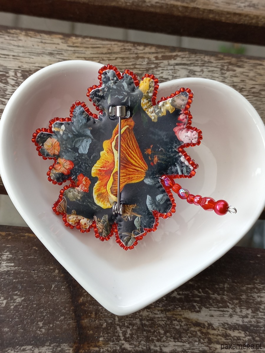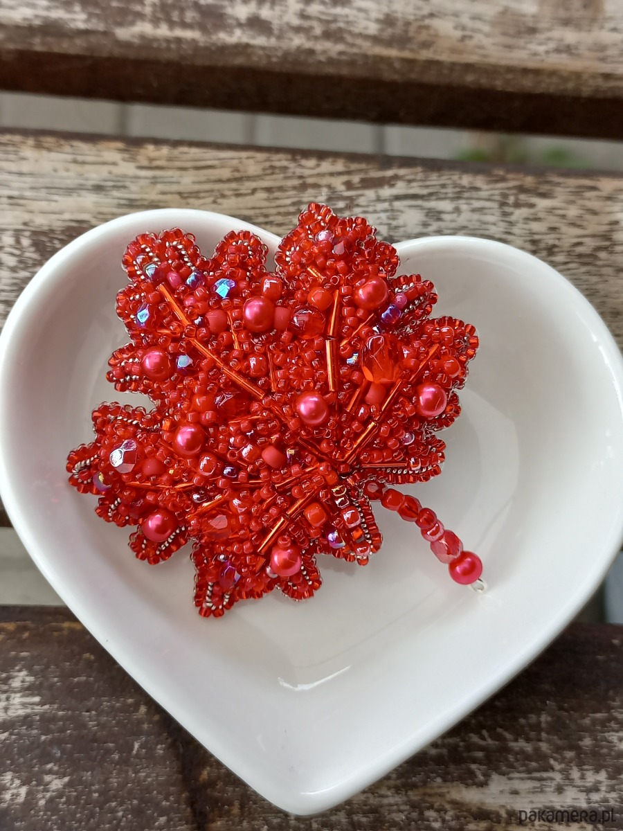 Broszka jesienny liść czerwony