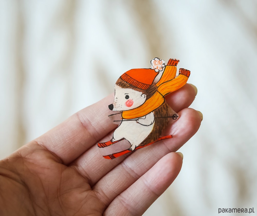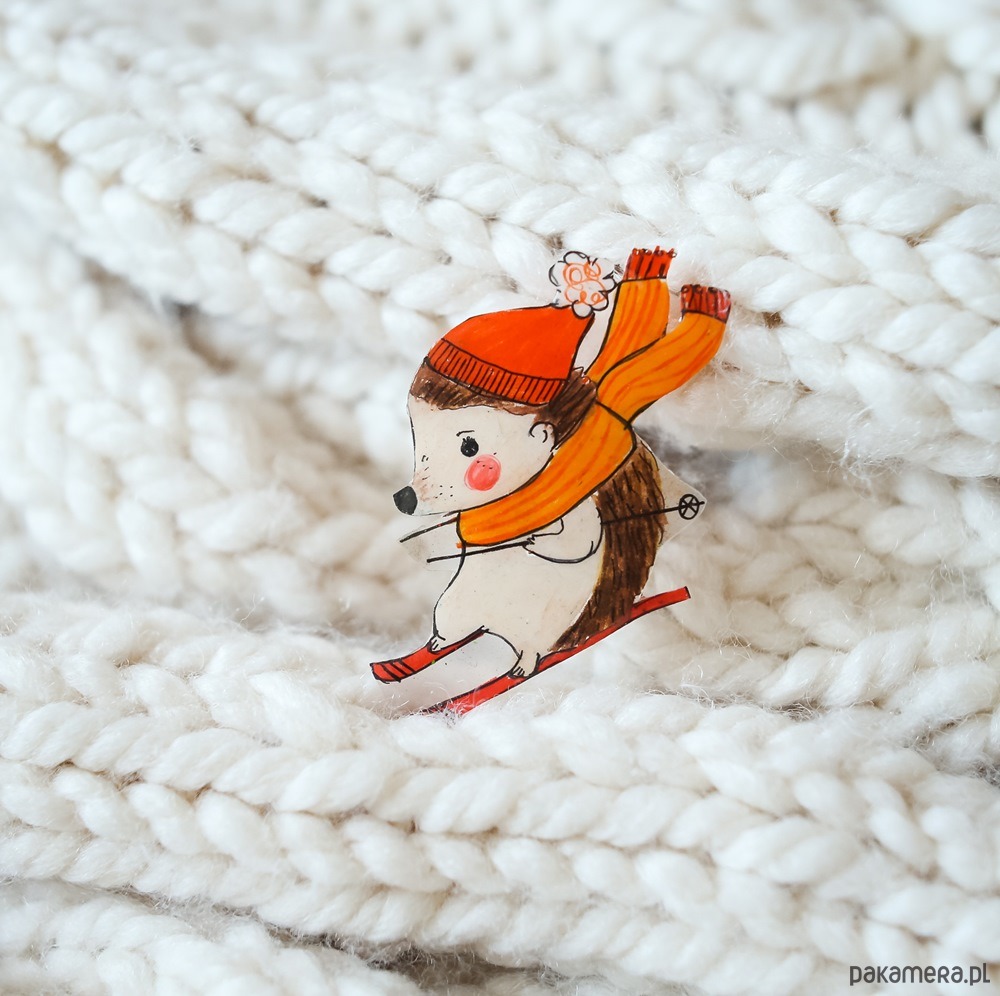 Piękna broszka ręcznie rysowana, zabezpieczona lakierem ekologicznym.