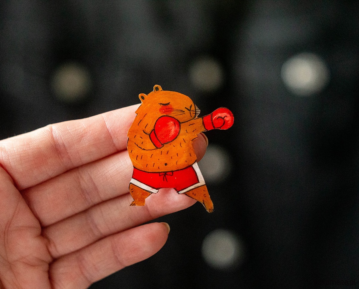 To już kolejna kapibarkowa broszka. Do "kapi" rodzinki dołączył Andrzej kapi Gołota :)