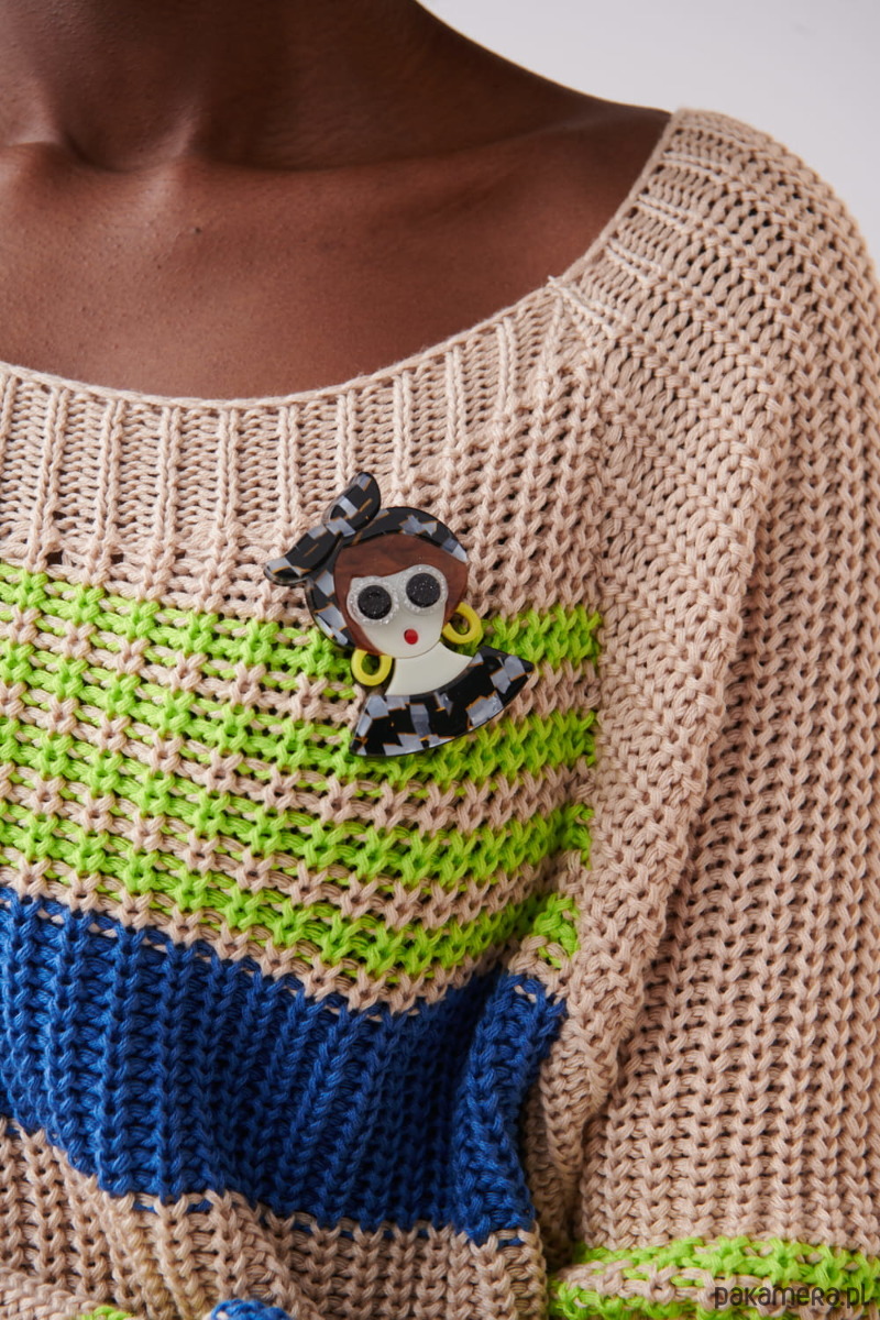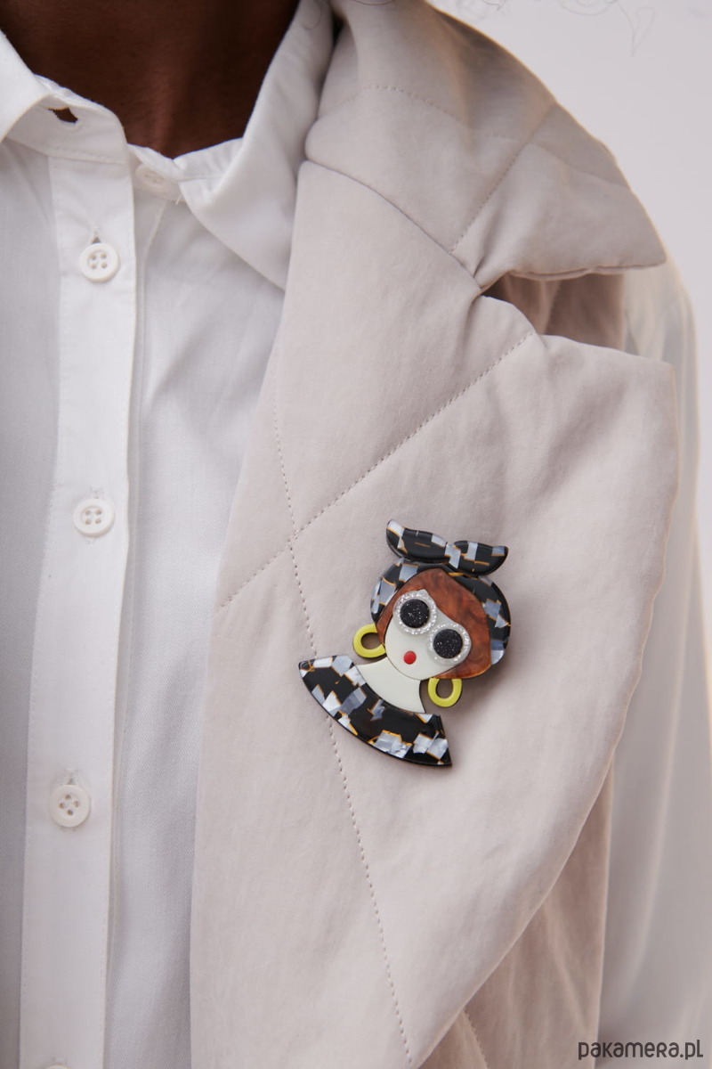 Broszka KlaraUrocza broszka damy, wykonana z kolorowego materiału nie szlachetnego.Broszka ta pięknie ozdobi twoje kreacje - czy to klasyczne czy minimalistyczne, w których będzie główną ozdobą.Idealnie prezentuje się zarówno na żakiecie jak i czapce, torbie czy płaszczyku.Zapięcie na agrafkę, które w prosty sposób można przypiąć do każdego ubrania lub innego materiału.Dostępna jest w kilku wariantach kolorystycznych Rozmiar broszki: ok. 6 cm x 5 cm