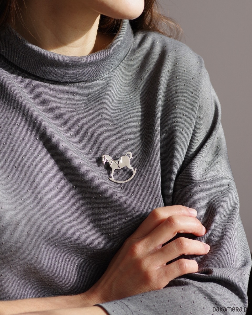 Konik to broszka całoroczna - jesienią i zimą sprawdzi się do swetrów, a wiosną i latem do bluzek oraz koszul. Jest lekka, dzięki czemu nie obciąża materiału.