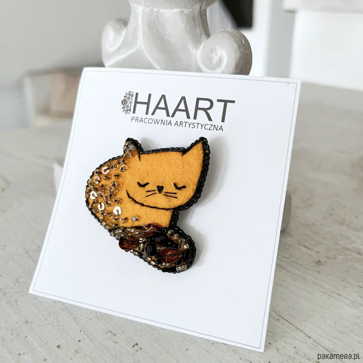 Przedstawiam wyjątkową, ręcznie haftowaną broszkę z serii KOT.