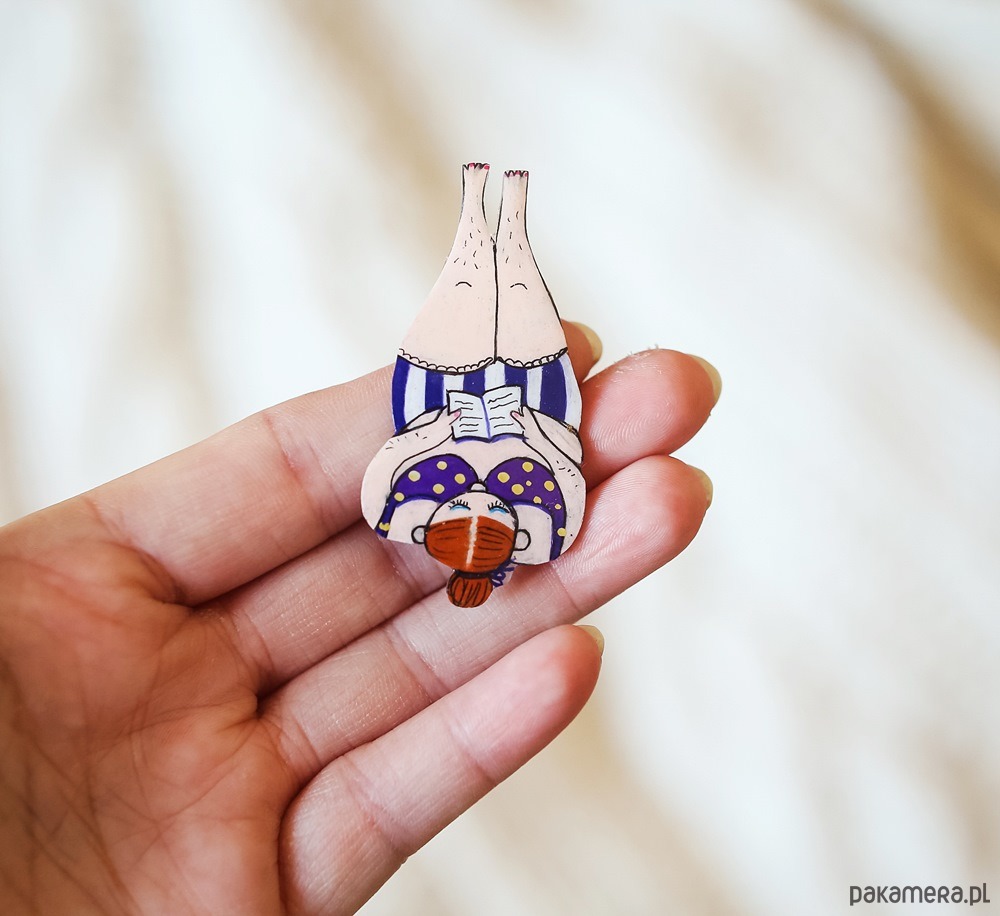 Broszka została namalowana na folii, zabezpieczona lakierem ekologicznym, a jej gatki zdobią naklejone małe kwiatuszki . Układ , oraz kolory kwiatków mogą się nieznacznie różnić!!!