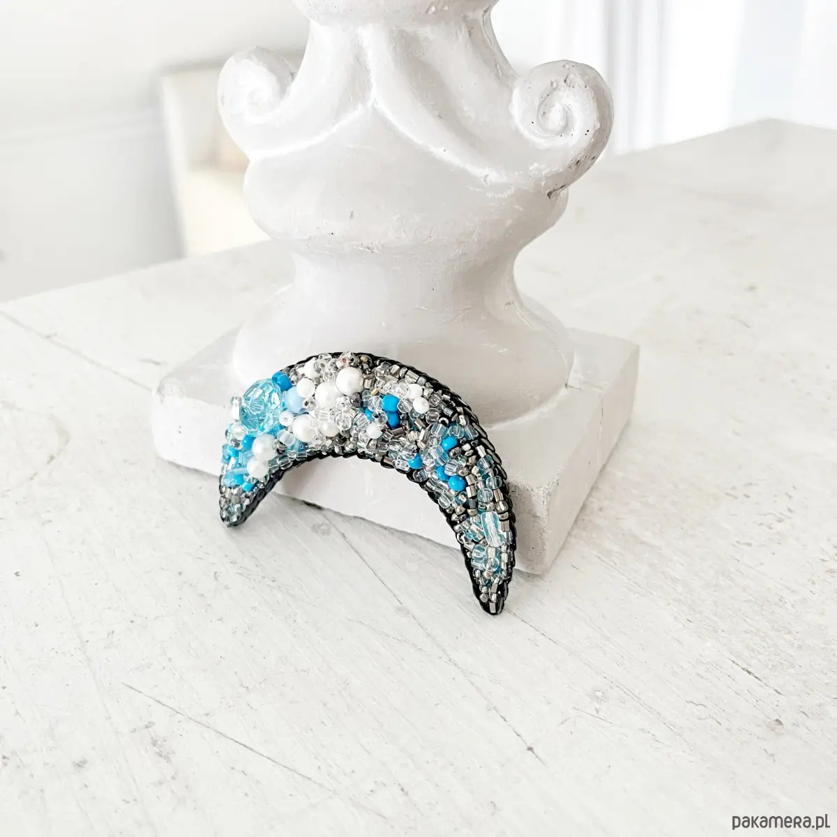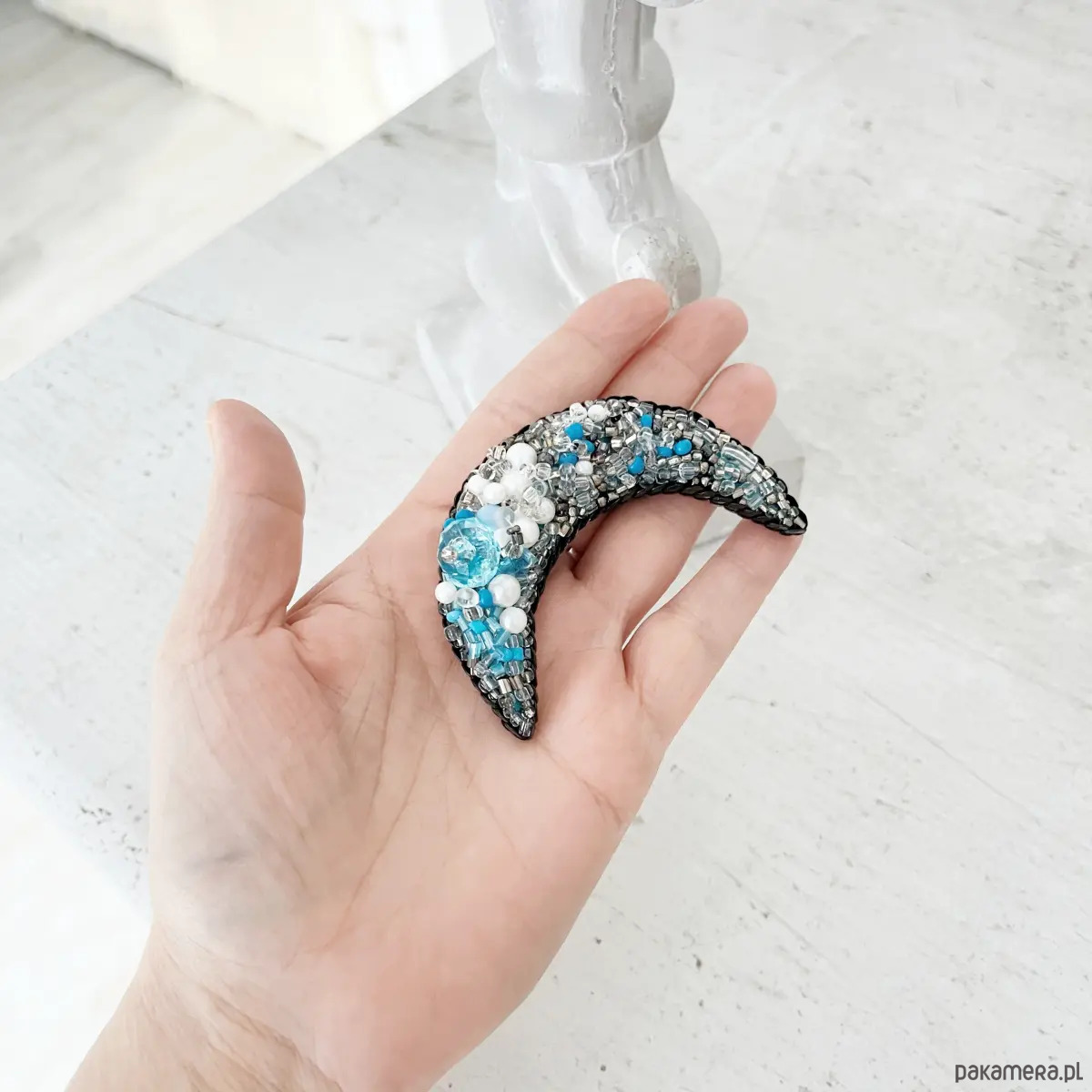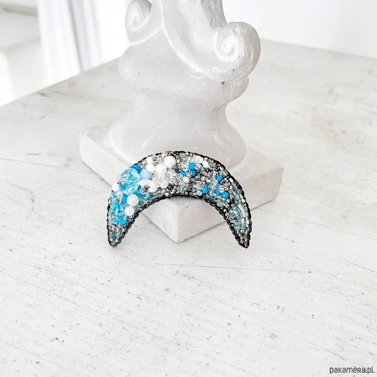 Broszka KSIĘŻYC 5 ręcznie haftowana koraliki