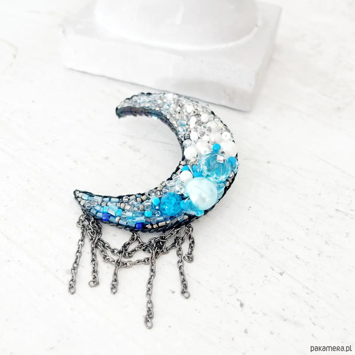 Broszka KSIĘŻYC 6 ręcznie haftowana koraliki