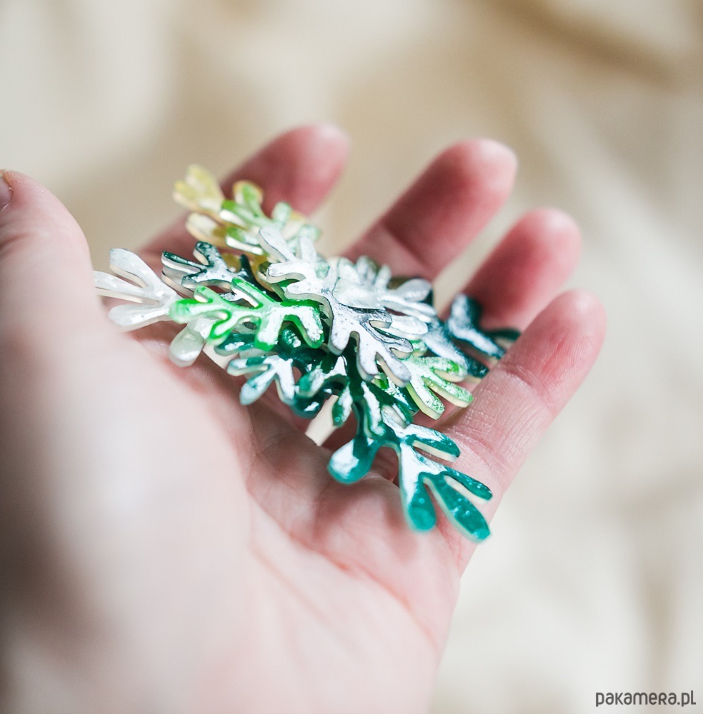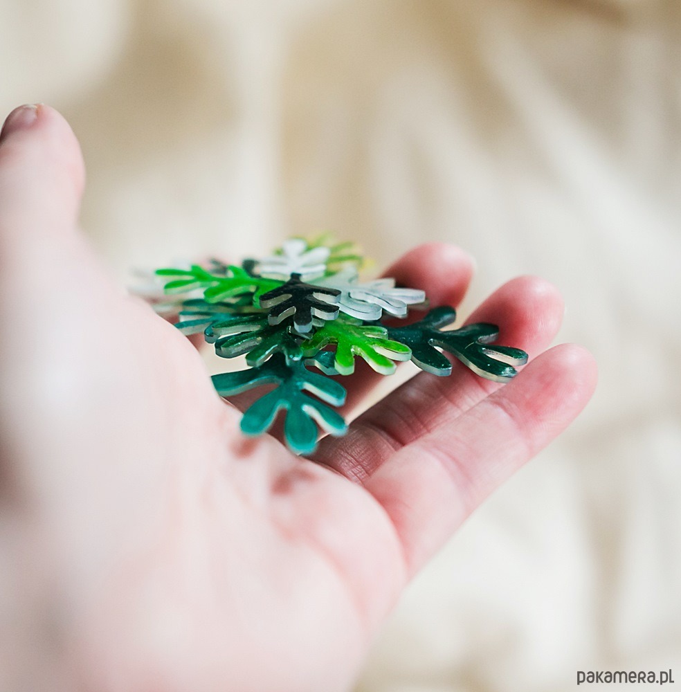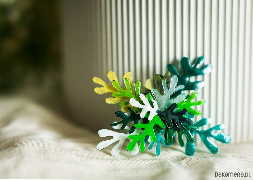 Każdy element broszki został polakierowany lakierem ekologicznym.
