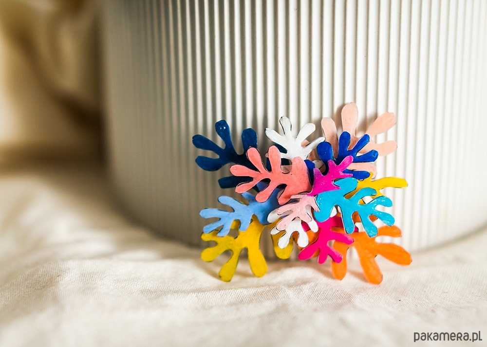 Każdy element broszki został polakierowany lakierem ekologicznym.