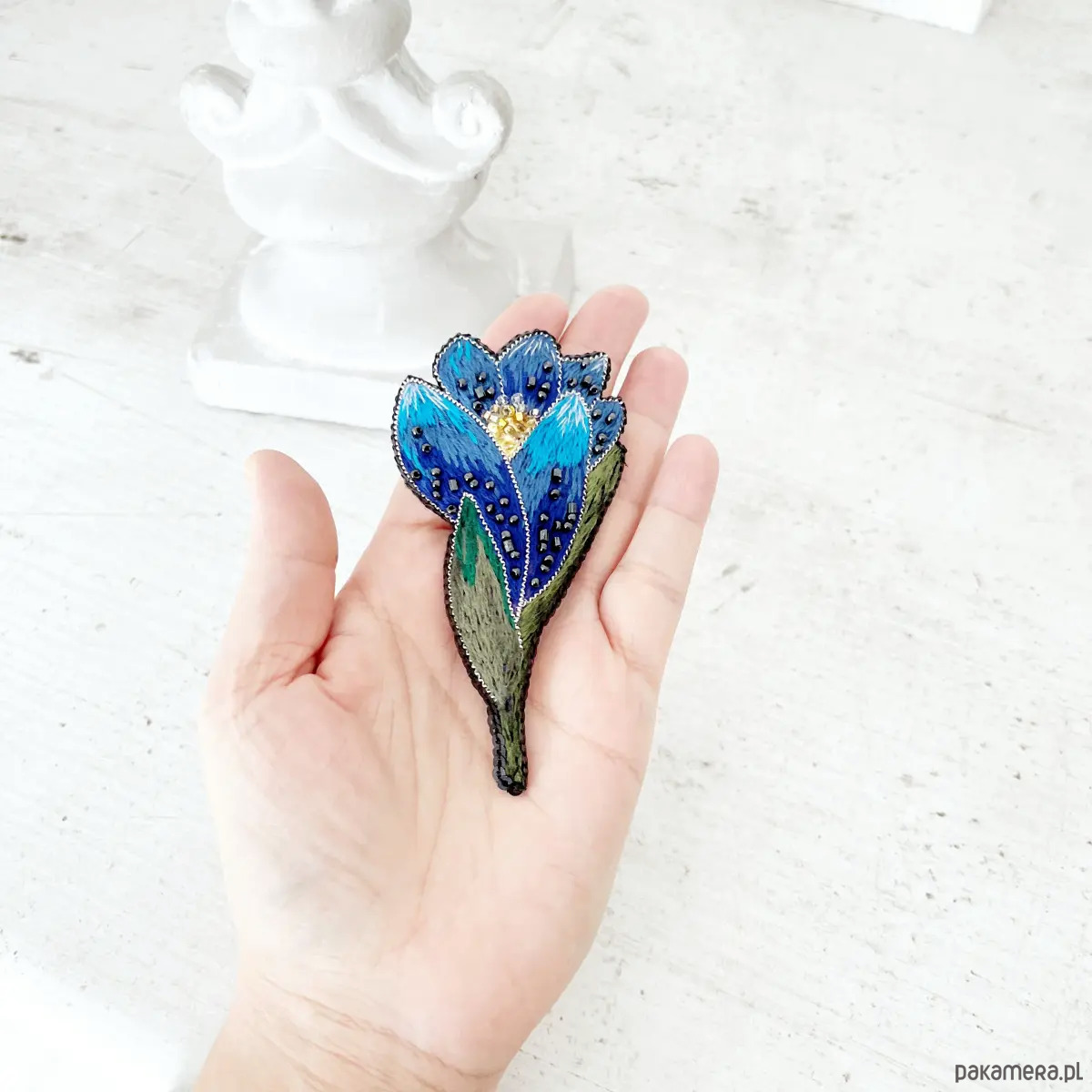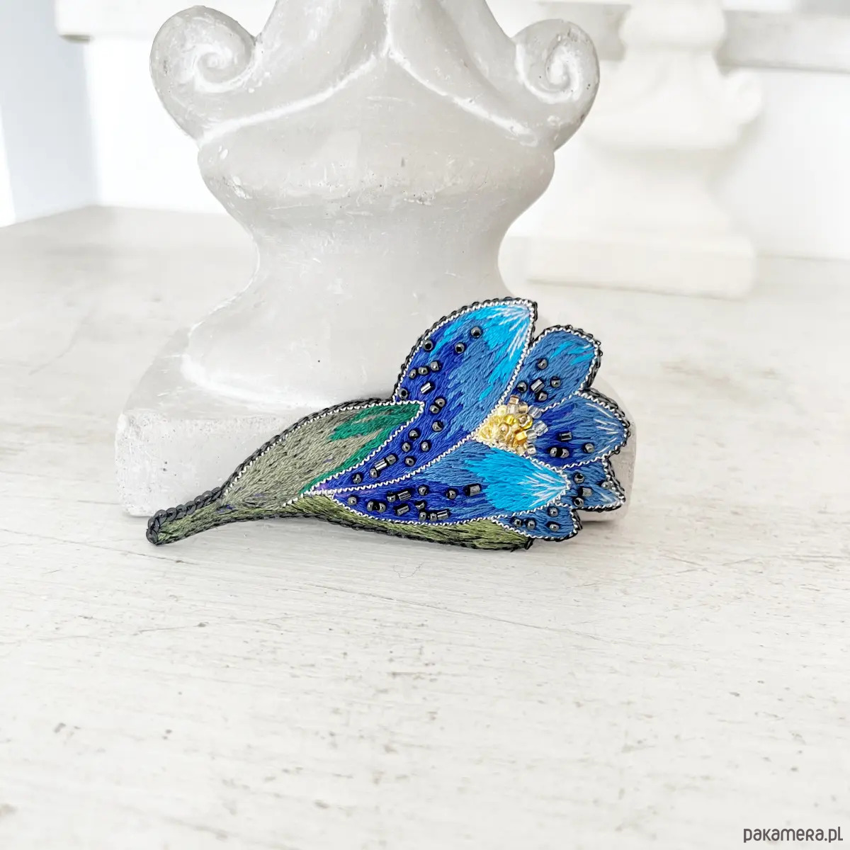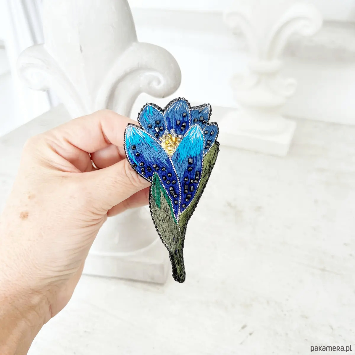 Broszka KWIAT 26 ręcznie haftowana przypinka z koralikami krokus