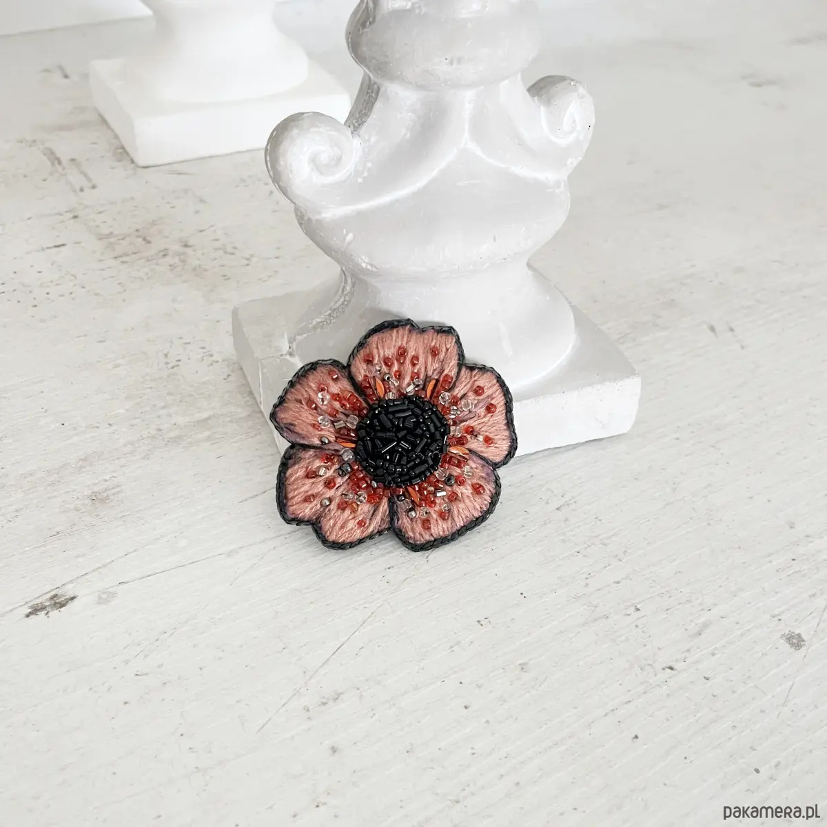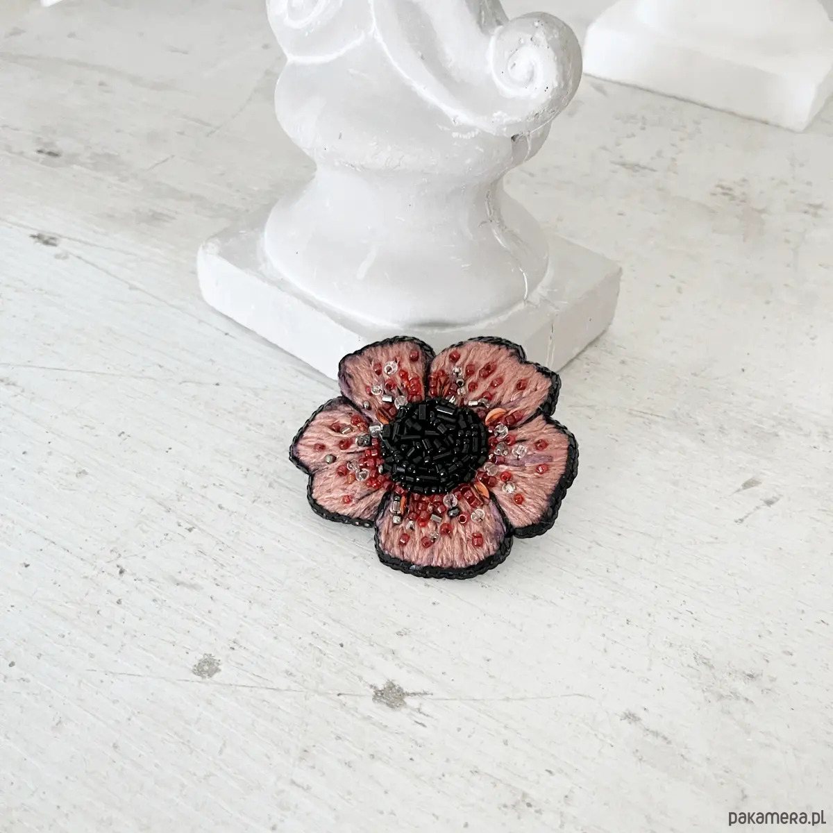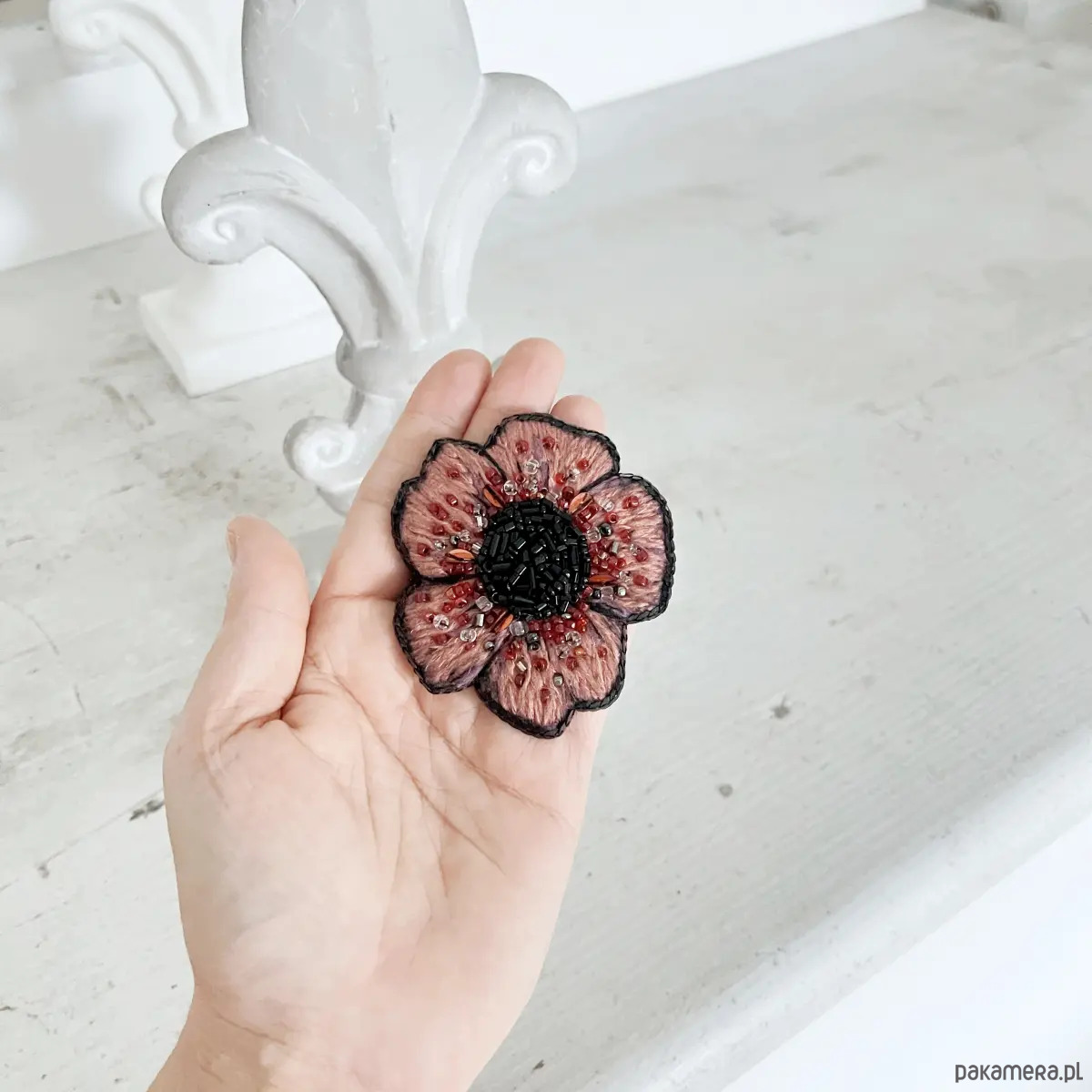 Broszka KWIAT 4 ręcznie haftowana przypinka z koralikami