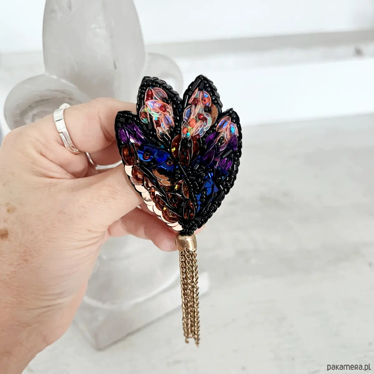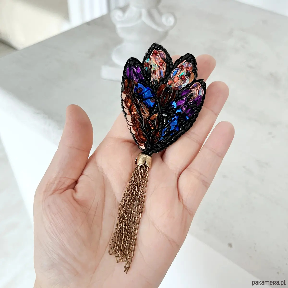 Niepowtarzalna, ręcznie haftowana broszka, która zachwyci Cię swoim urokiem. Została stworzona ręcznie, z dbałością o każdy szczegół. To unikalna i wyjątkowa biżuteria.