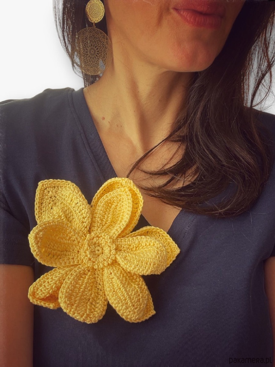 Ta duża, trójwymiarowa broszka to prawdziwa ozdoba, która przyciąga spojrzenia! Ręcznie wykonana z bawełnianego kordonka, zachwyca swoją przestrzenną formą i robi wrażenie od pierwszego spojrzenia. To nie jest delikatny dodatek – to mocny, wyrazisty element stylizacji, który doda charakteru każdej kreacji. Jest bardzo w trendach!