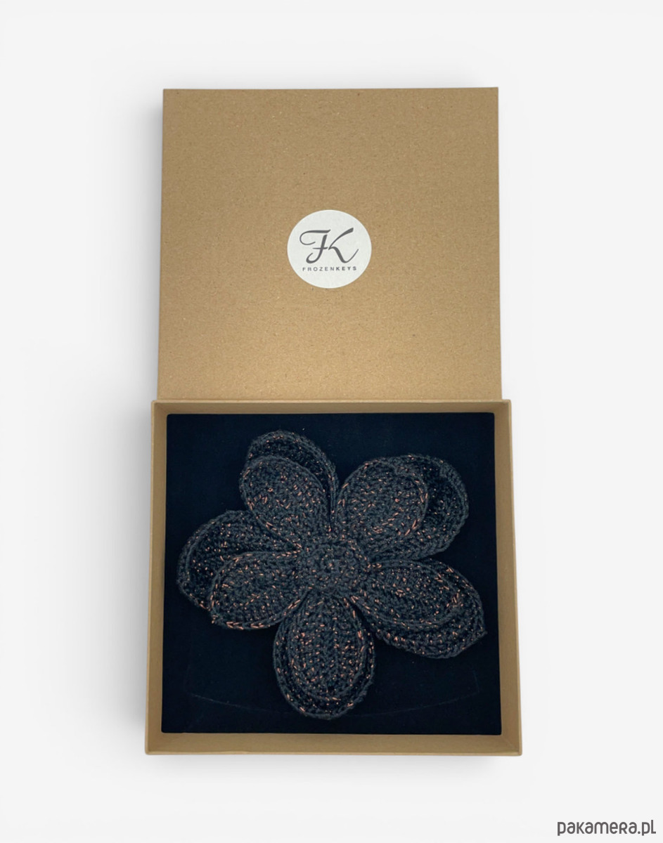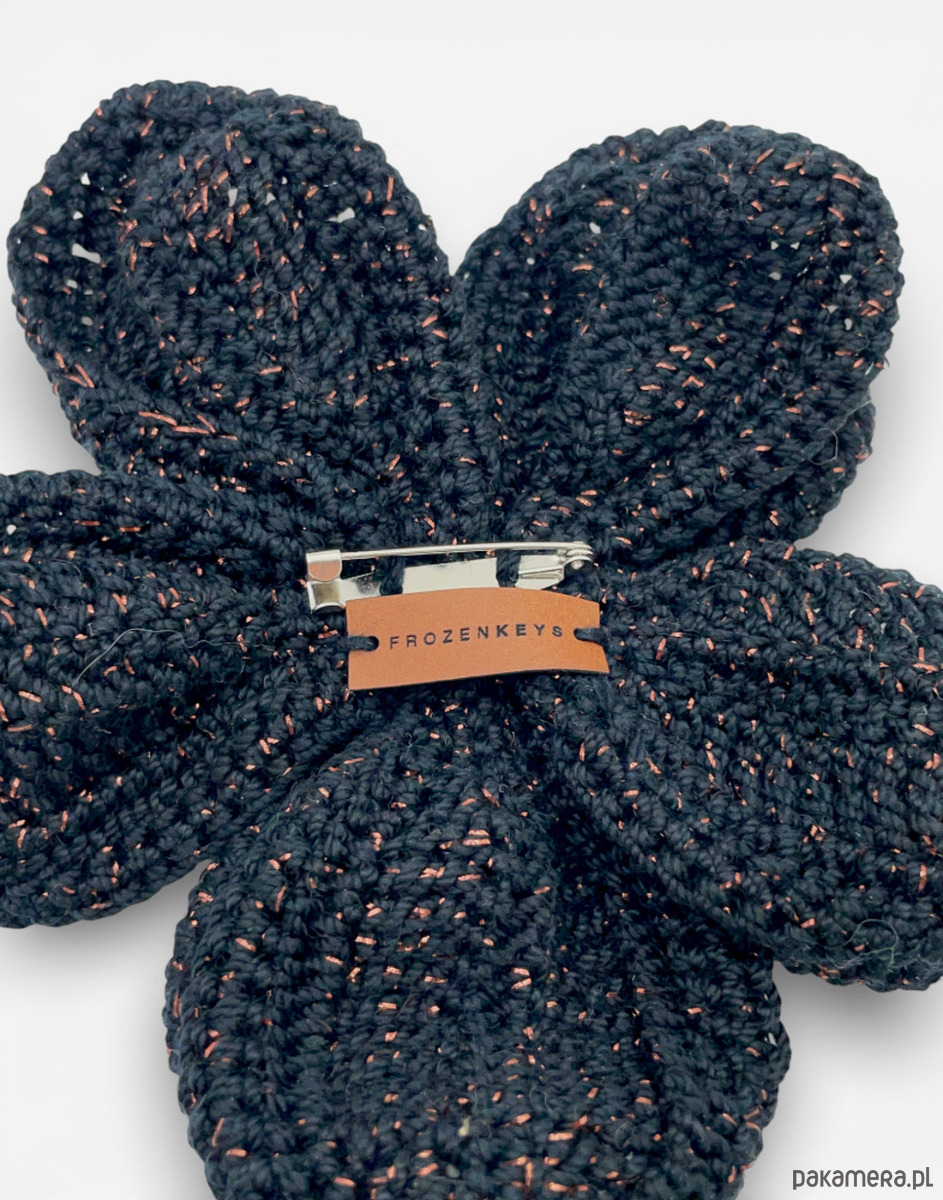 Broszka kwiat XL - czarna z miedzianą błyszczącą nitką