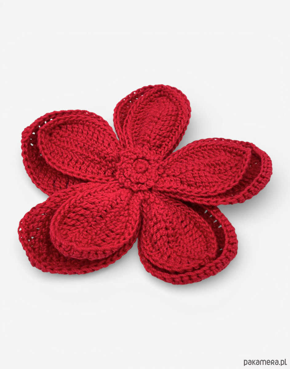 Kwiat, który nie potrzebuje przedstawienia. Ta dwuwarstwowa broszka, wyrazisty dodatek, który doda charakteru Twojej stylizacji. Ręcznie wykonana z bawełnianego kordonka, zachwyca formą i kolorem – czerwona będzie pięknym akcentem naturalnych tkanin. A może wolisz inny kolor - poszukaj w naszej ofercie.