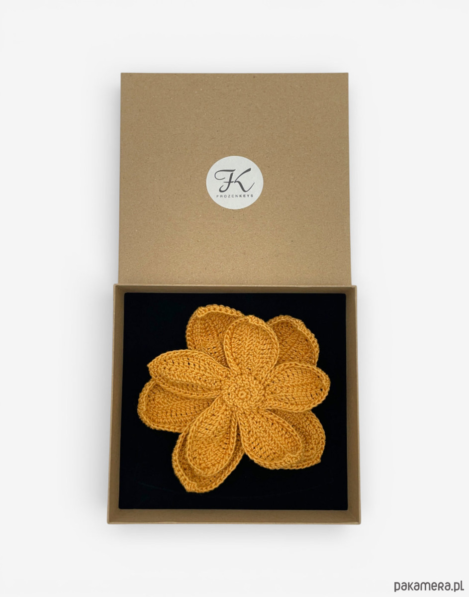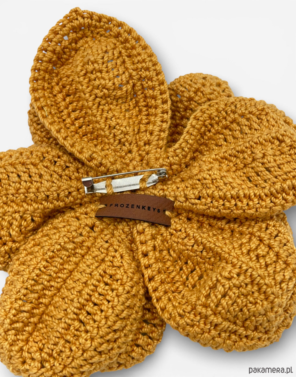 Kwiat, który nie potrzebuje przedstawienia. Ta dwuwarstwowa broszka, wyrazisty dodatek, który doda charakteru Twojej stylizacji. Ręcznie wykonana z bawełnianego kordonka, zachwyca formą i kolorem - tutaj w wersji miodowej. A może wolisz inny kolor - poszukaj w naszej ofercie.