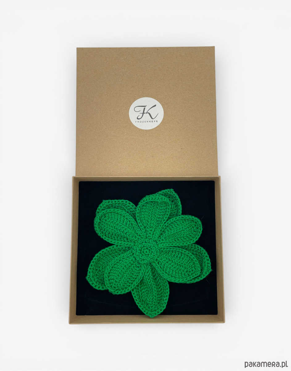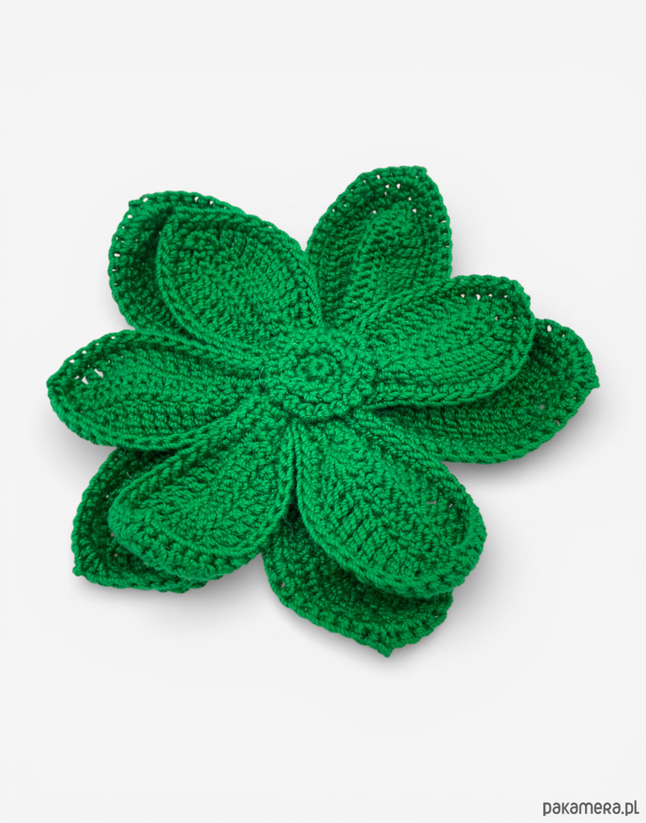 Kwiat, który nie potrzebuje przedstawienia. Ta dwuwarstwowa broszka, wyrazisty dodatek, który doda charakteru Twojej stylizacji. Ręcznie wykonana z bawełnianego kordonka, zachwyca formą i kolorem - tutaj w wersji zielonej. A może wolisz inny kolor - poszukaj w naszej ofercie.