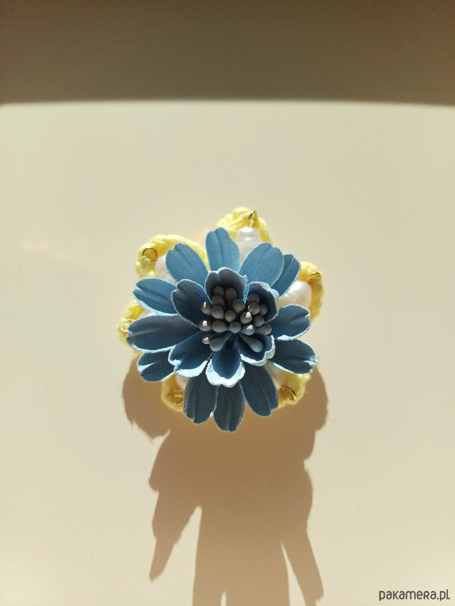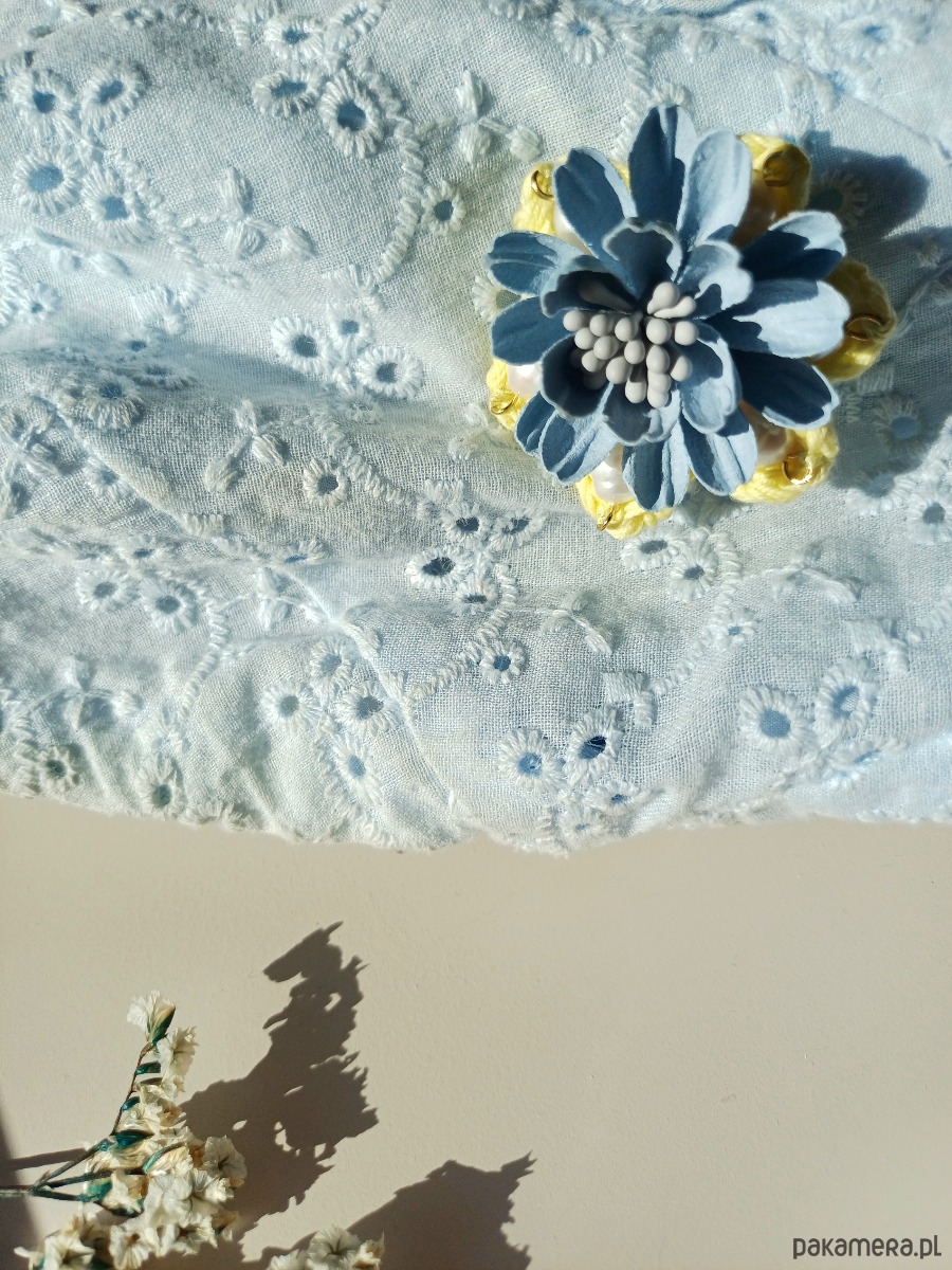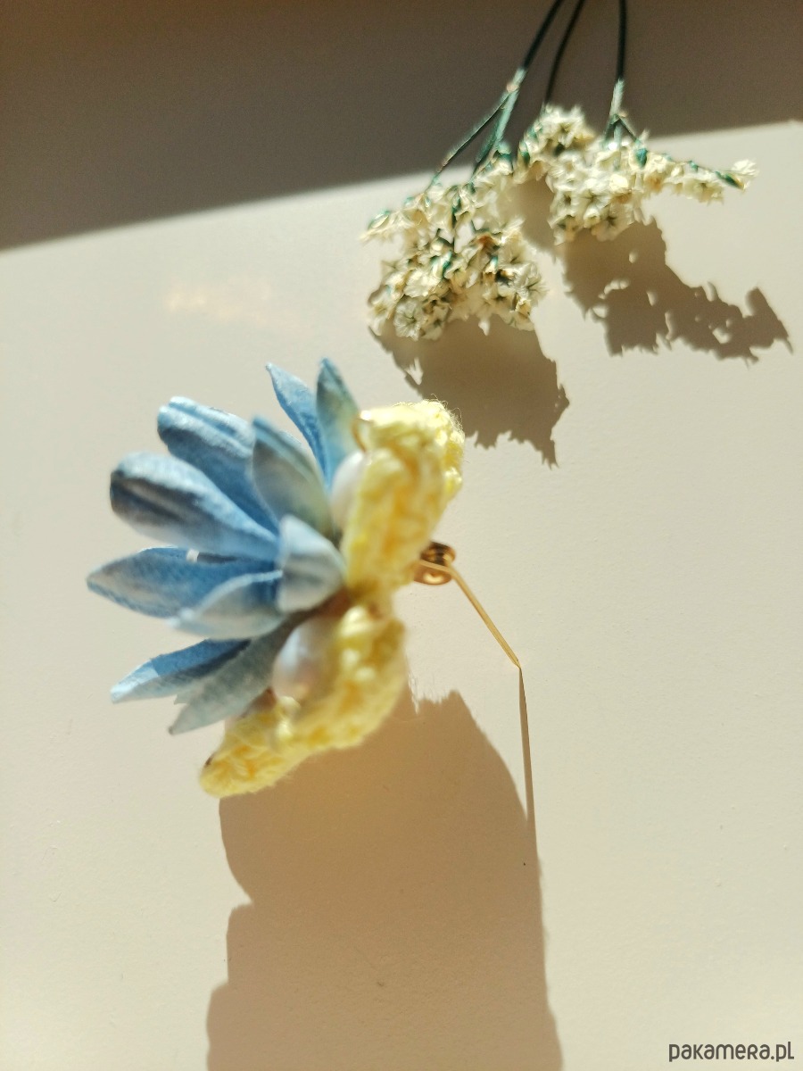 Przepiękna , delikatna broszka wykonana z aplikacji - bawełnianego kwiata oraz z pereł naturalnych. Idealna dla kobiety, która ceni sobie wyjątkowość dodatków stanowiących uzupełnienie stylizacji.