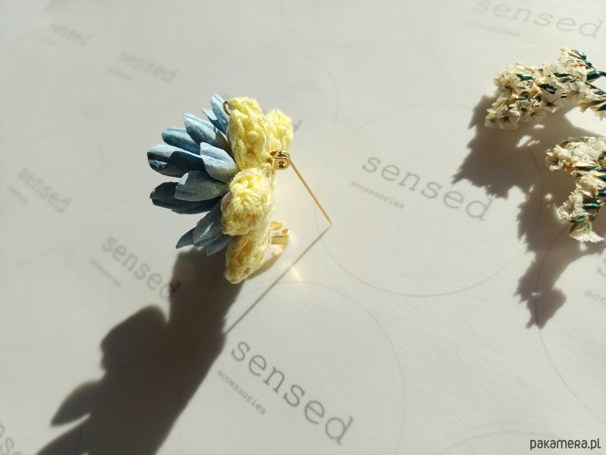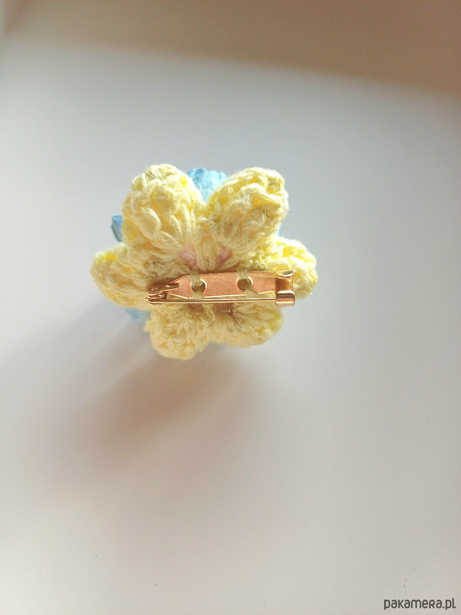 Elementy : perły naturalne : ok 10 mm, aplikacja - kwiat wykonany z bawełny : ok 4 cm , wygodne zapięcie broszki : stal szlachetna .