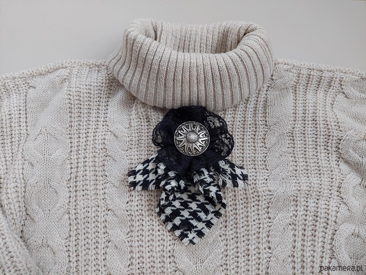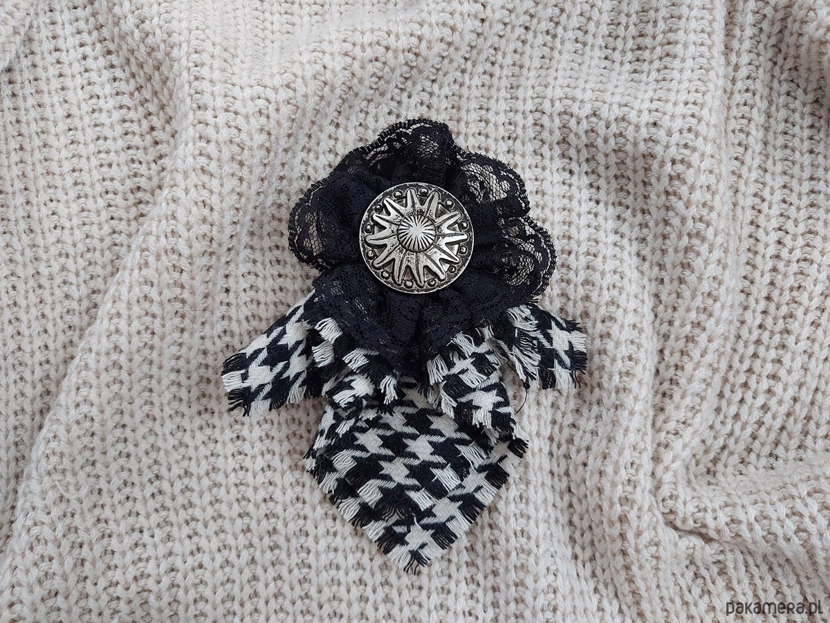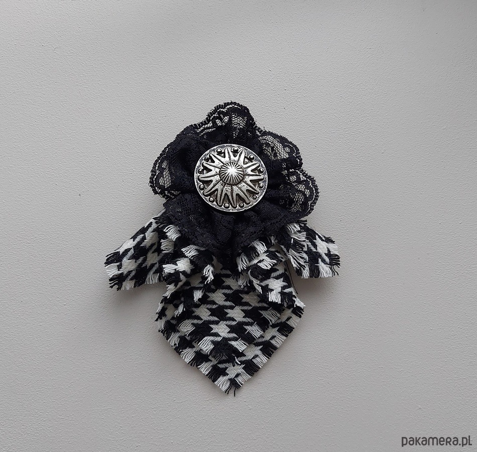 Pepitka to ponadczasowy i wyjątkowo elegancki deseń. W tej odsłonie pojawia się jako ręcznie wykonana broszka à la żabot. To wyrazisty akcent, który pięknie podkreśla styl i dodaje charakteru każdej stylizacji. Możesz ją przypiąć do klapy żakietu, przy dekolcie sweterka lub przy kołnierzu koszuli.