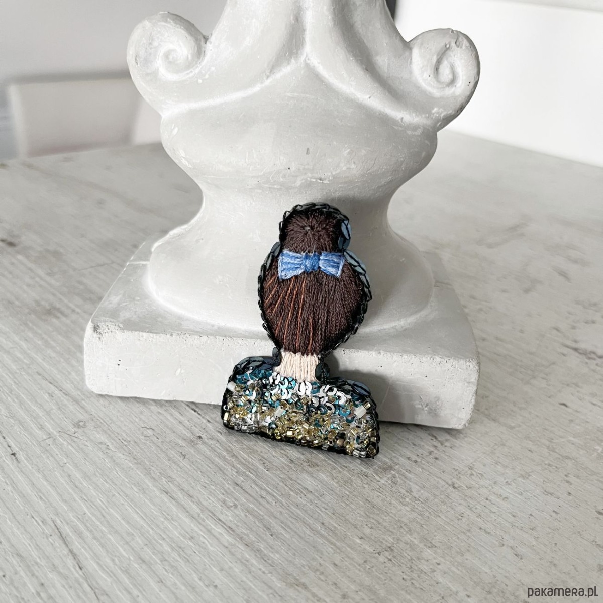 Broszka LADY 9 ręcznie haftowana przypinka kobieta dziewczyna