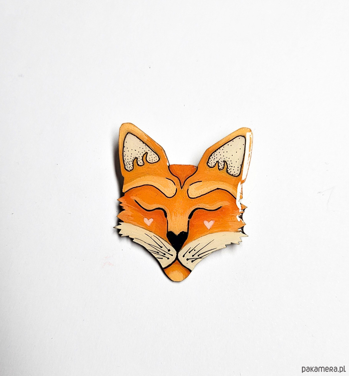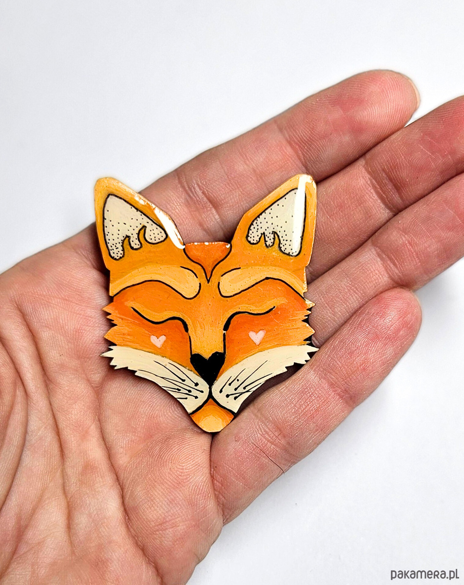 Broszka z drewna , ręcznie malowana, zabezpieczona żywicą, wielkość około 5 cm