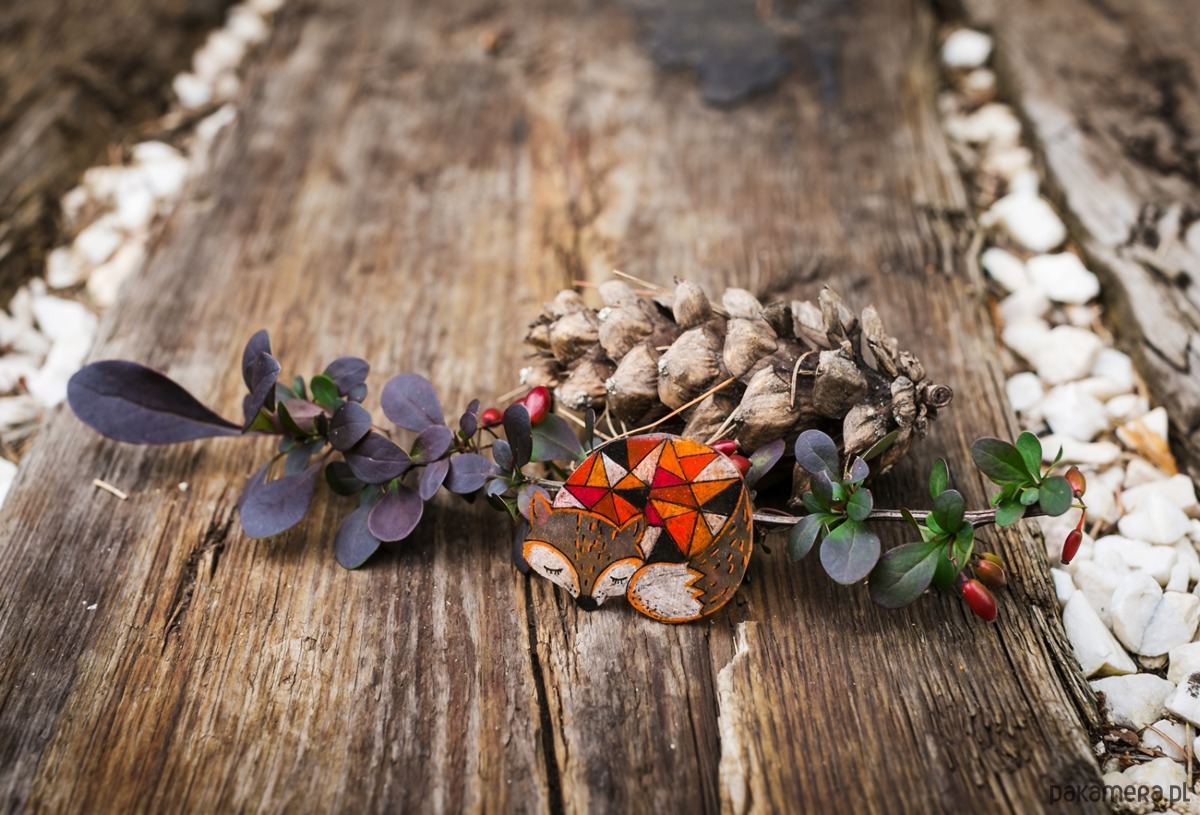 Piękna broszka ręcznie rysowana, zabezpieczona lakierem ekologicznym. Powierzchnia broszki jest błyszcząca.