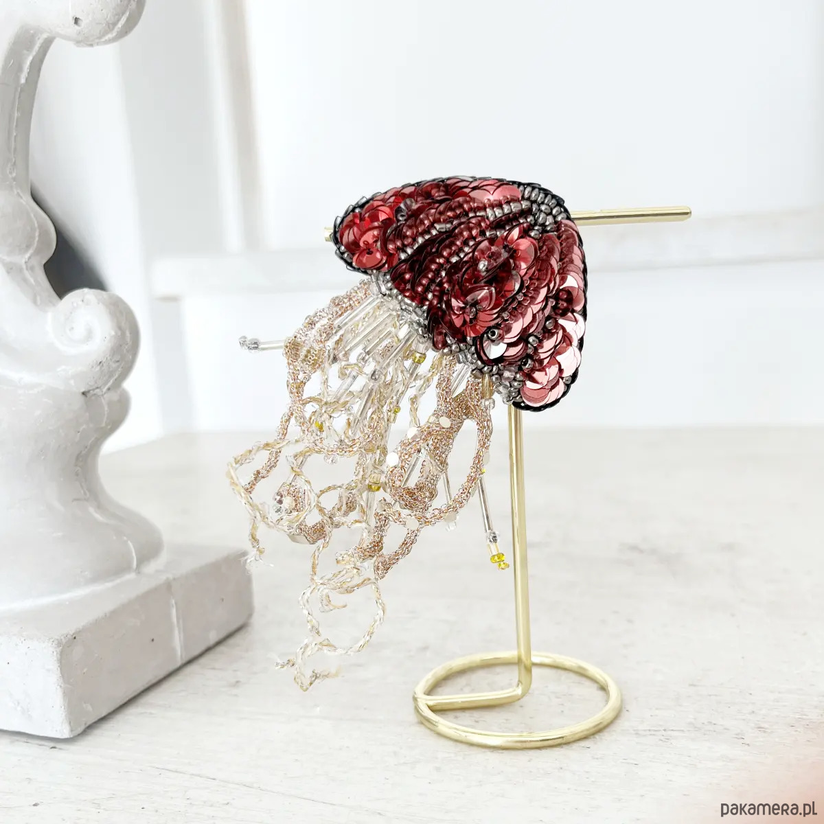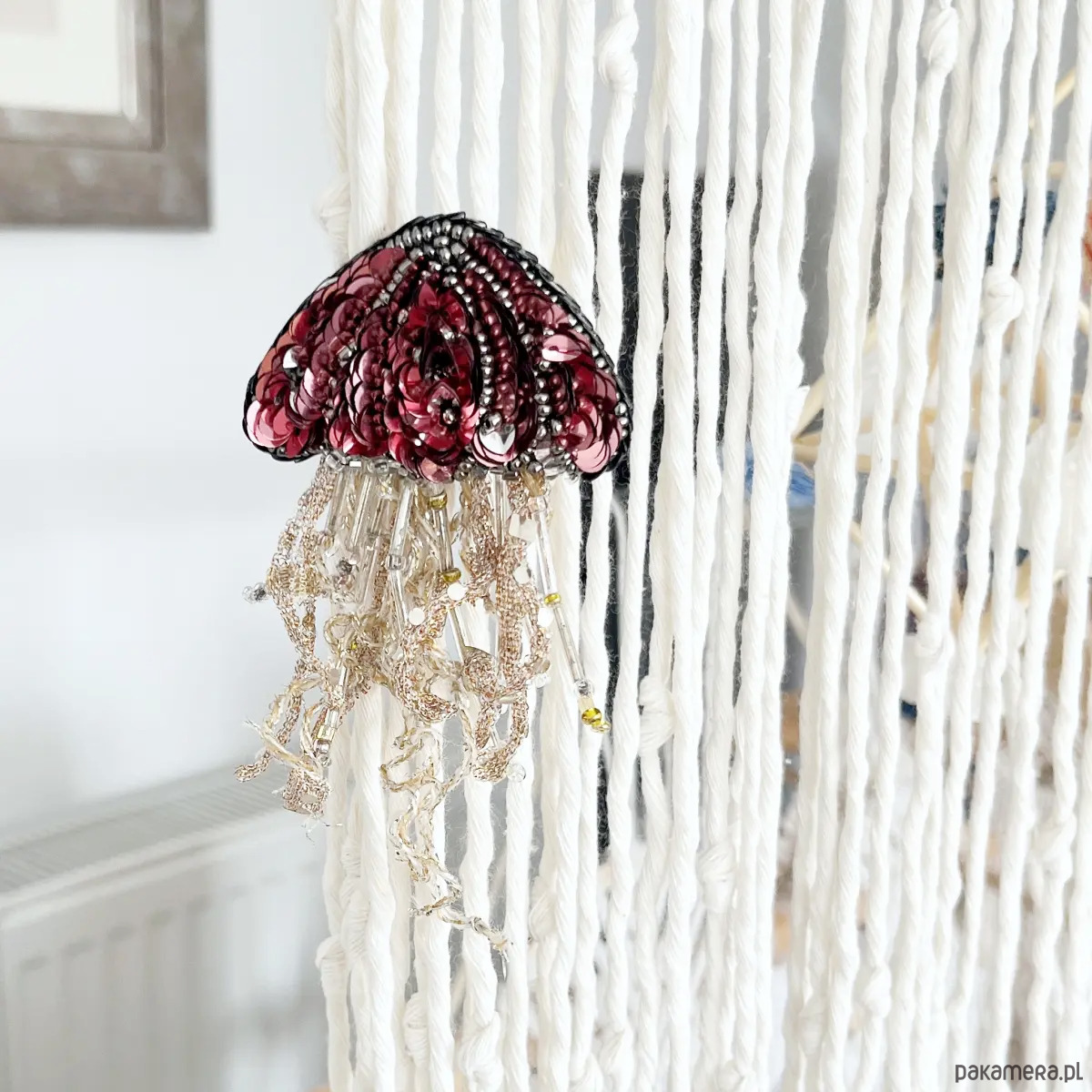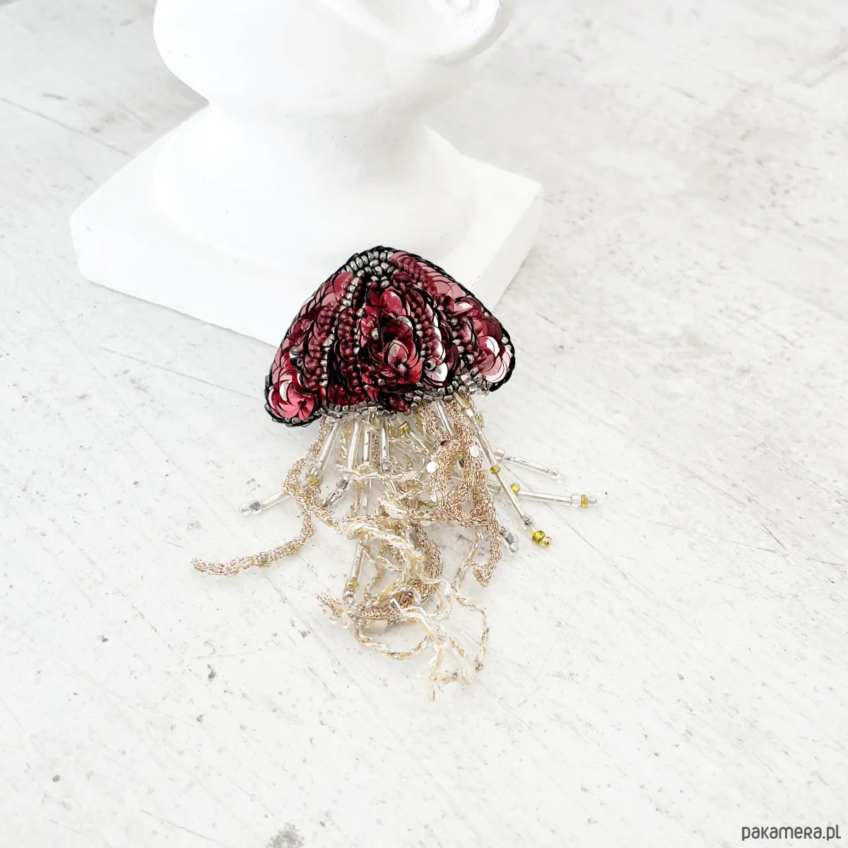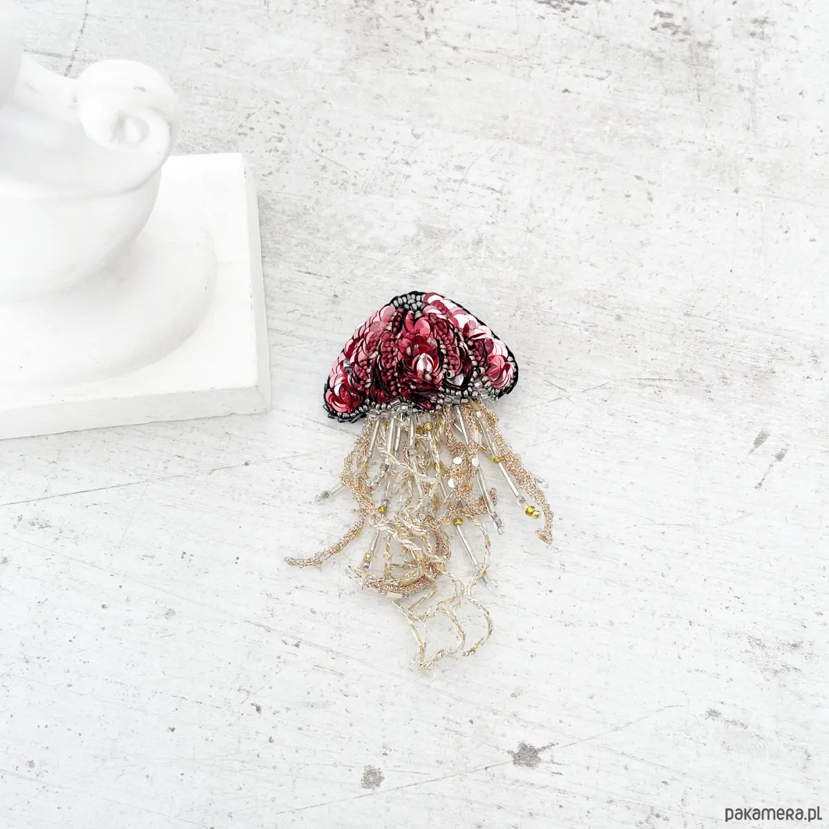 Broszka MEDUZA 5 ręcznie haftowana brocha morska