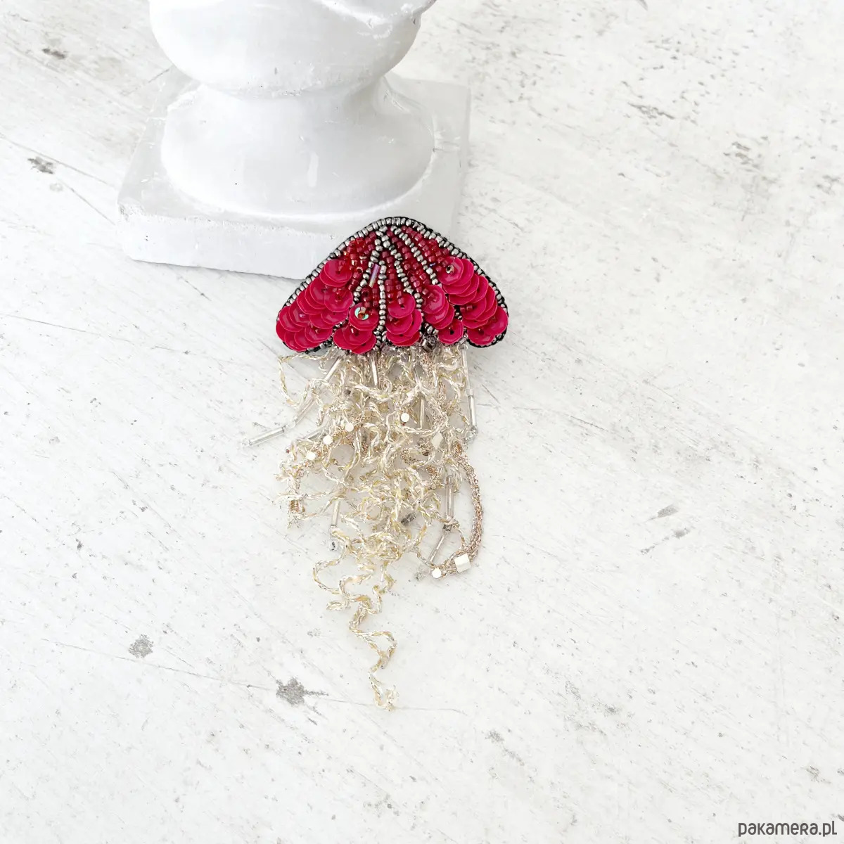 Broszka MEDUZA 6 ręcznie haftowana brocha morska