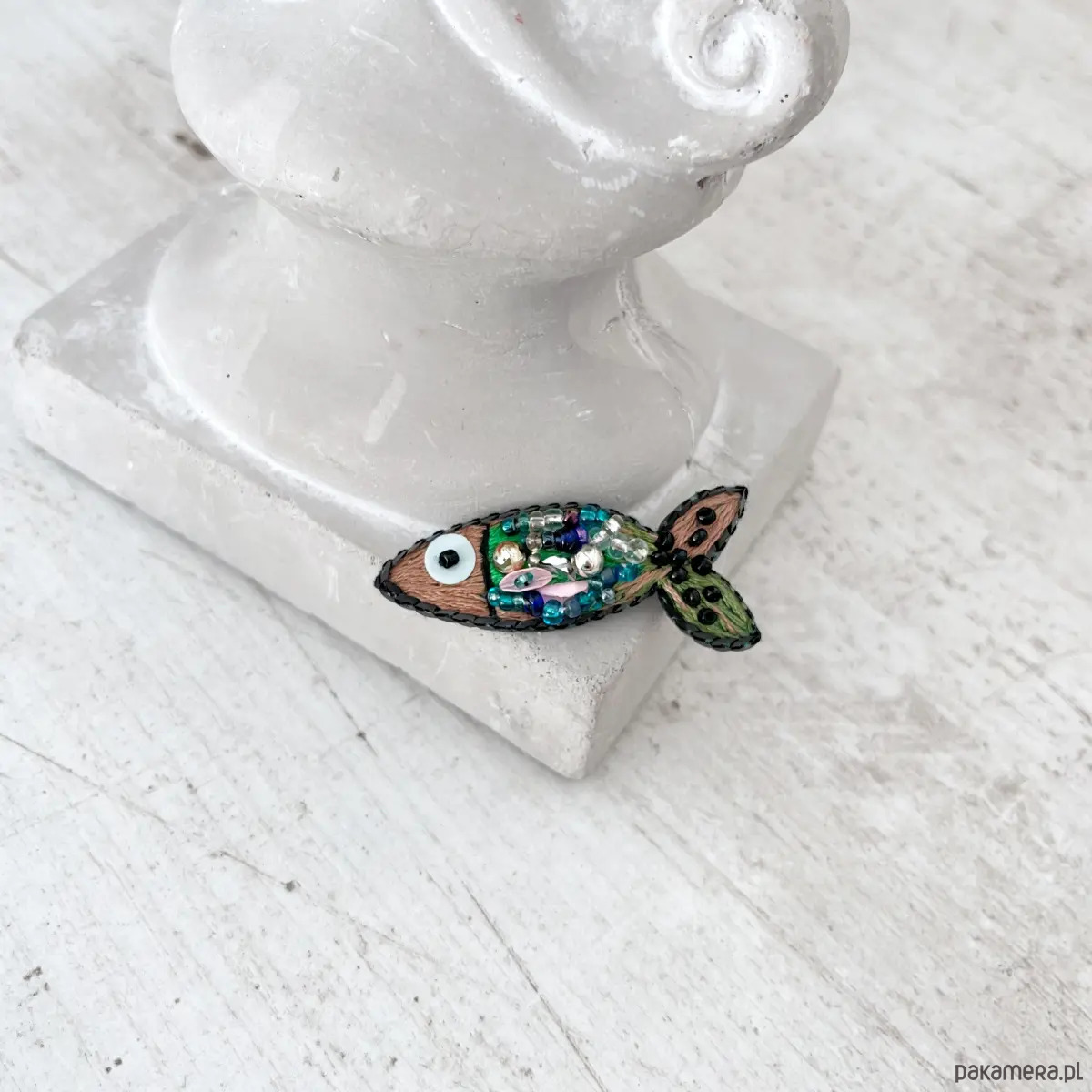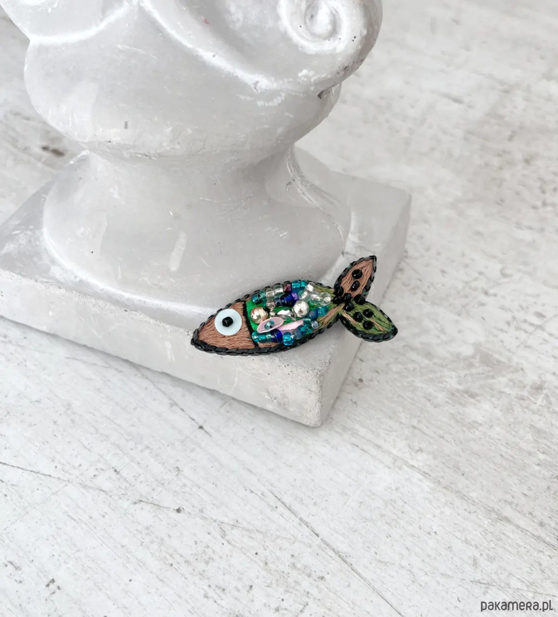 Broszka mini RYBKA 23 ręcznie haftowana przypinka rękodzieło śledzik