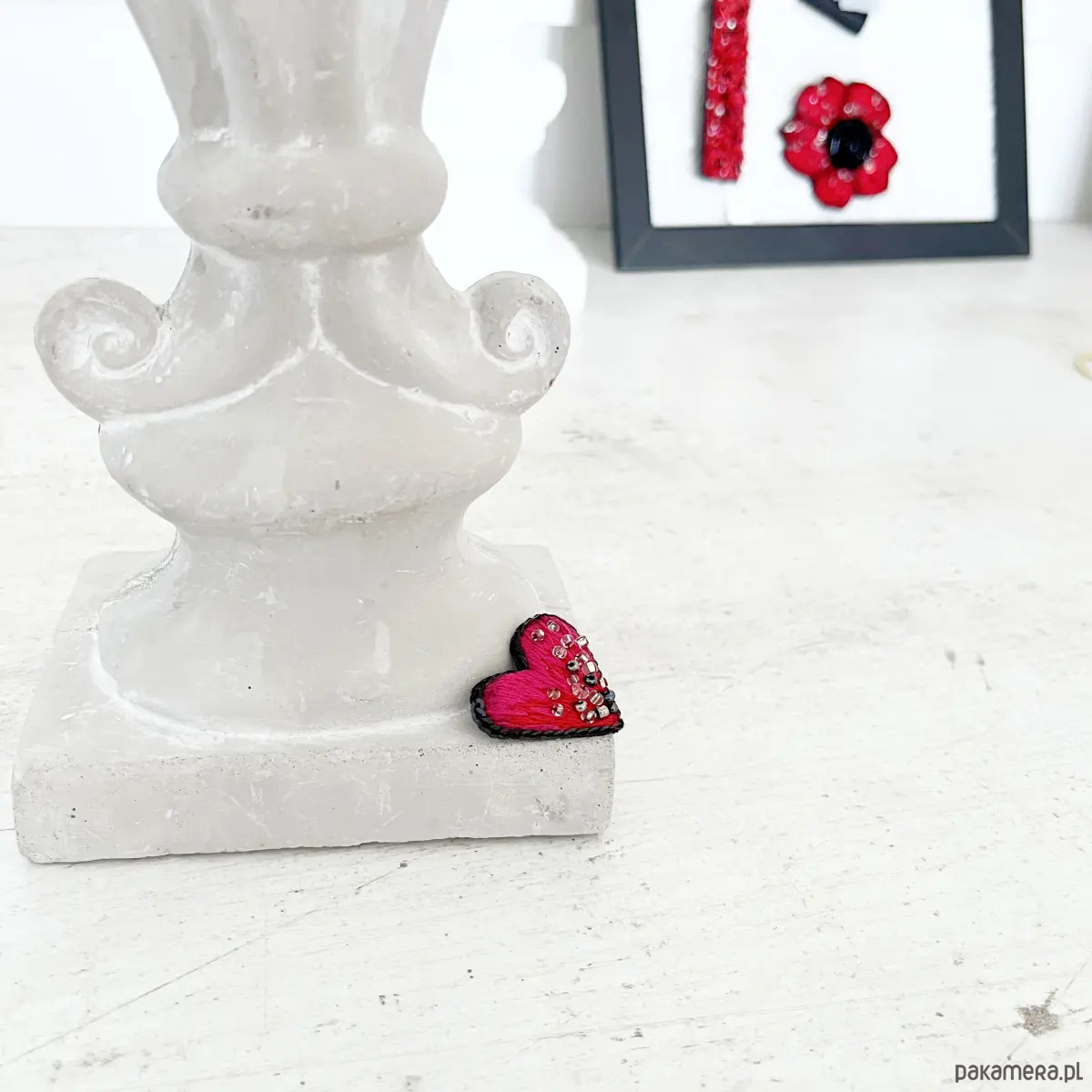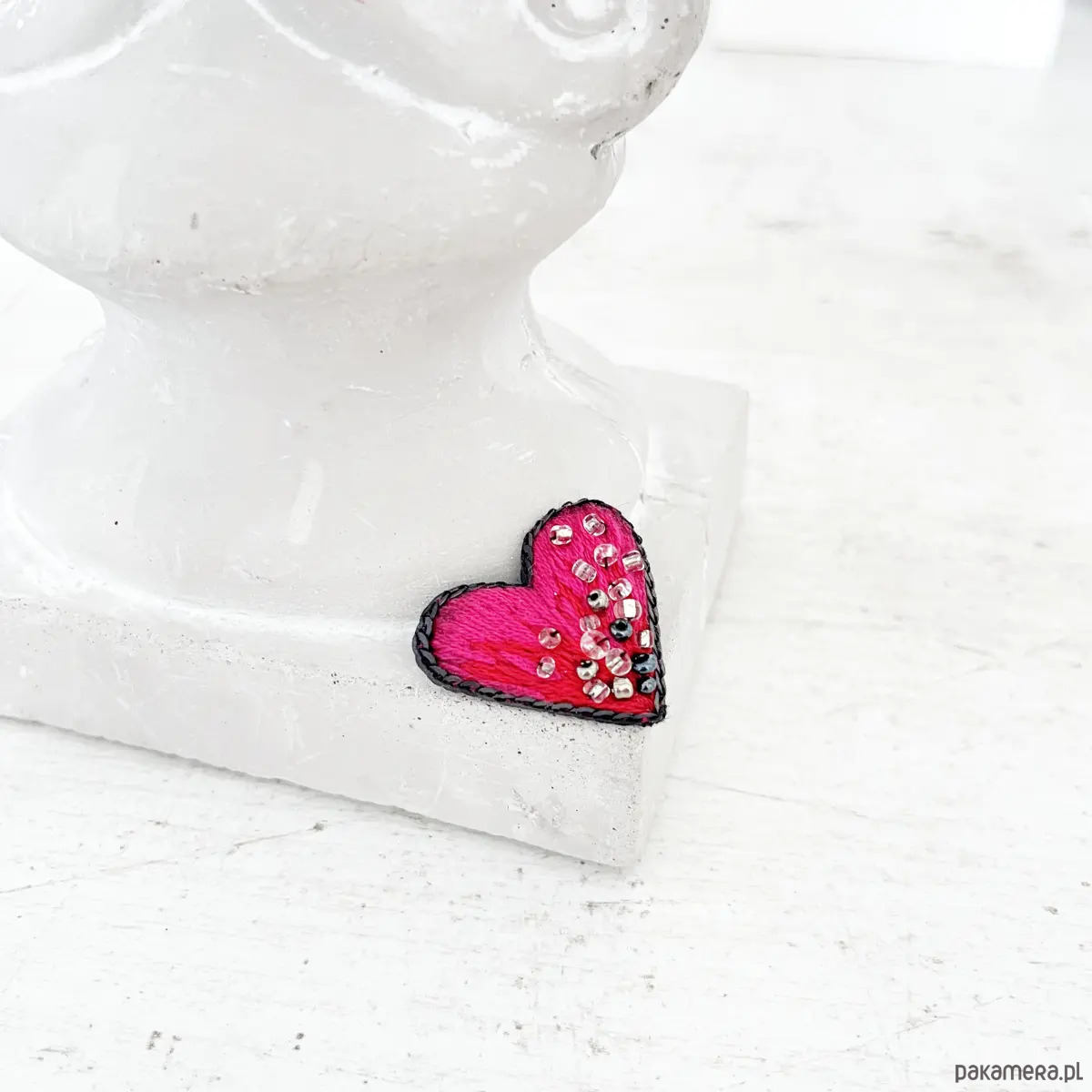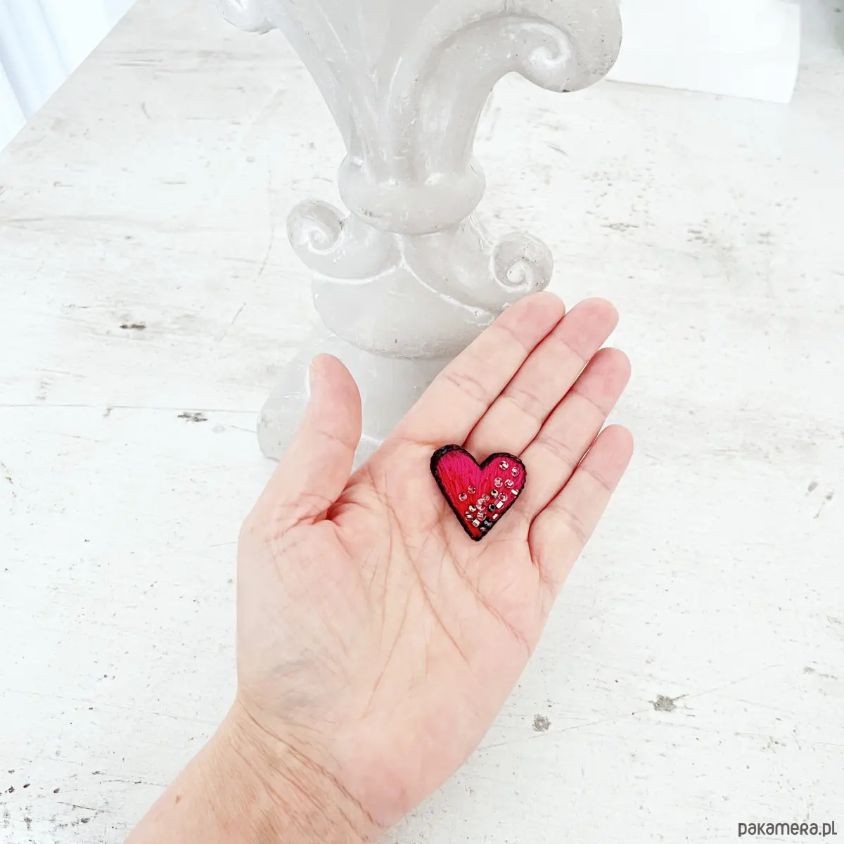 Broszka mini SERCE 15 ręcznie haftowana przypinka miłość