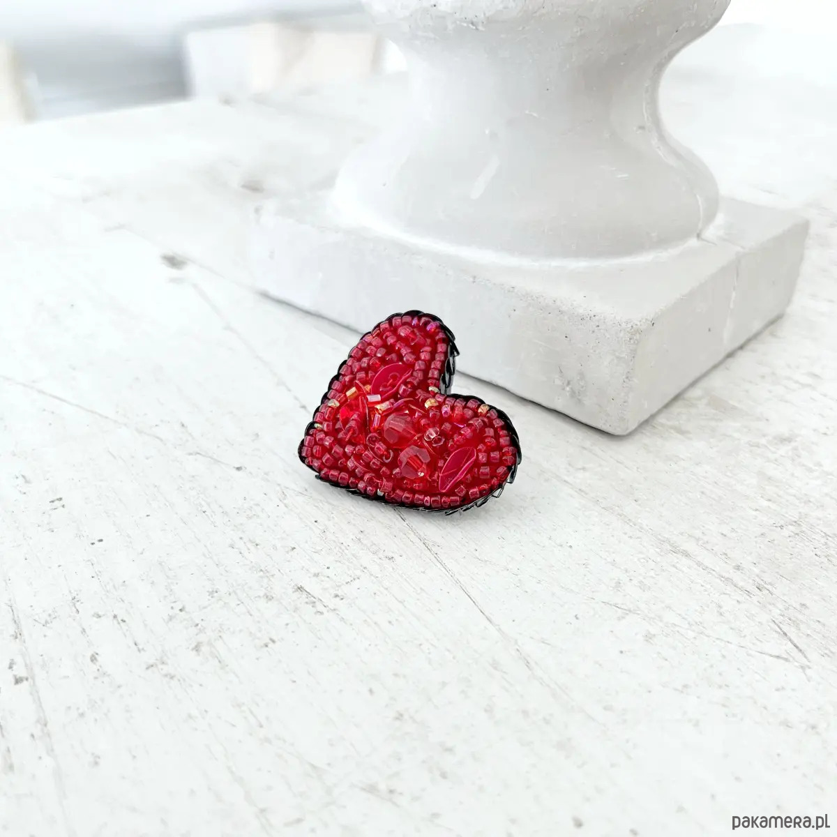 Broszka mini SERCE 2 ręcznie haftowana przypinka miłość