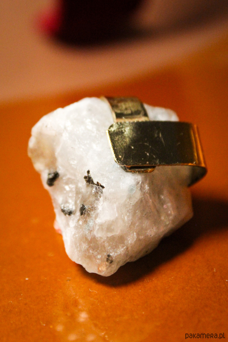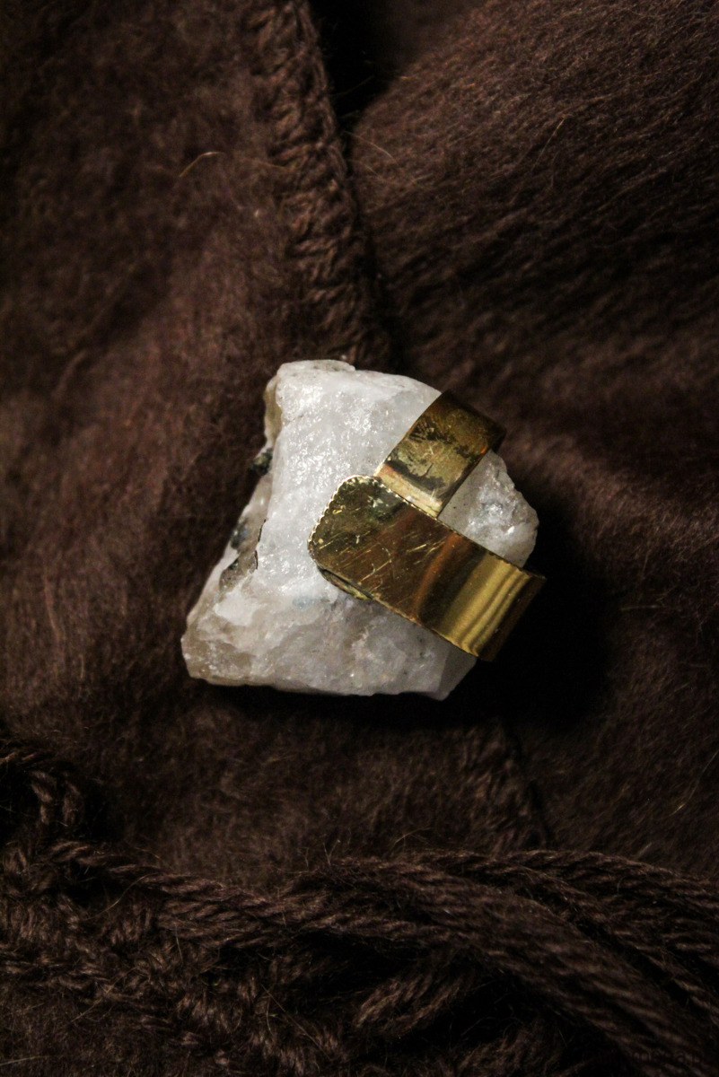 Ręcznie wykonana minimalistyczna broszka z Kwarcem białym.To połączenie stylowego mosiądzu z naturalnym i surowym kamieniem. Rzemieślniczy i luksusowy dodatek o niepowtarzalnym charakterze.
