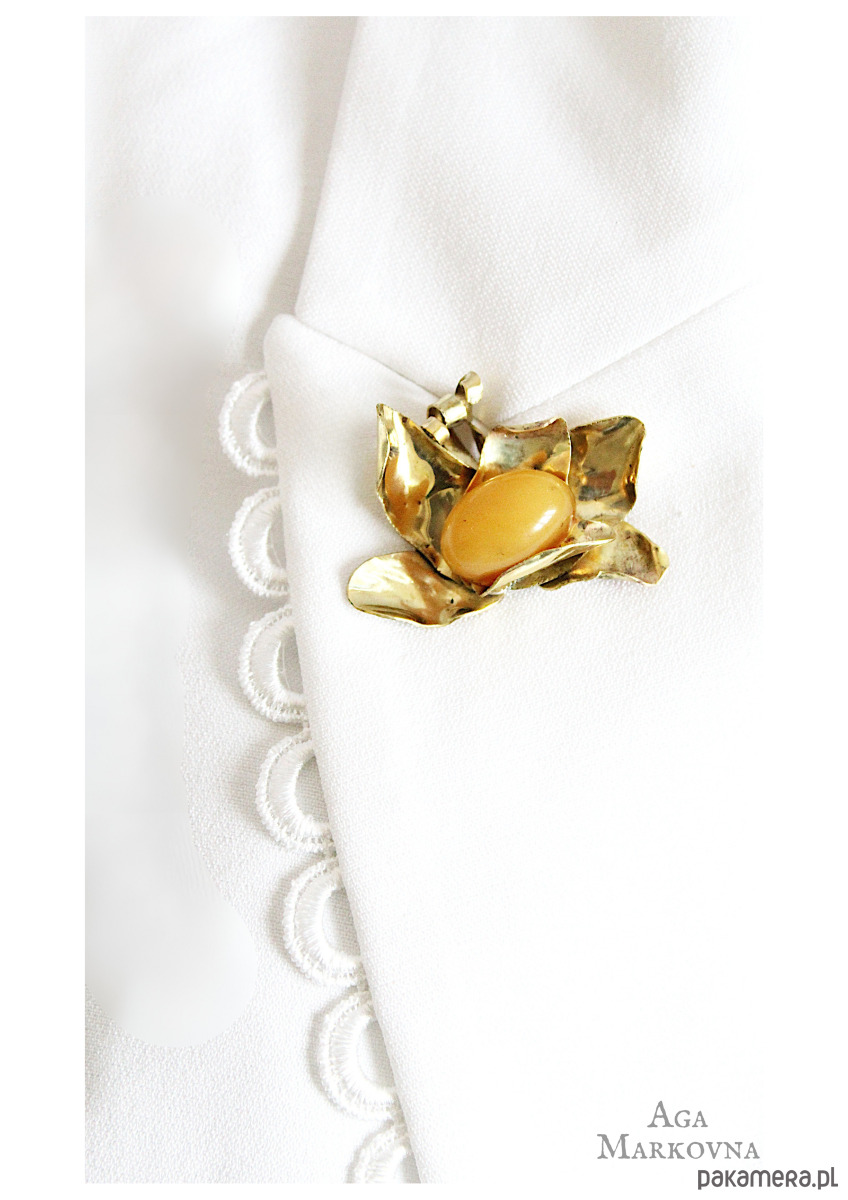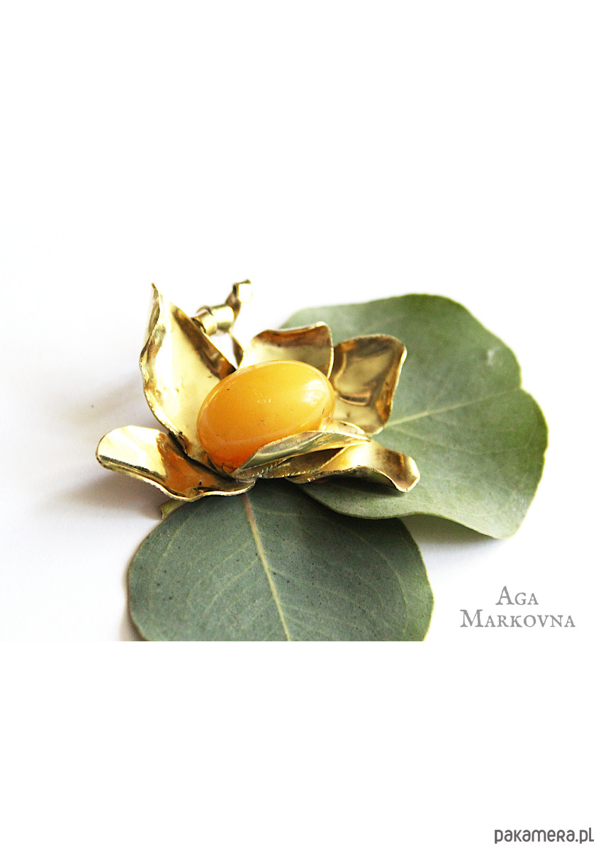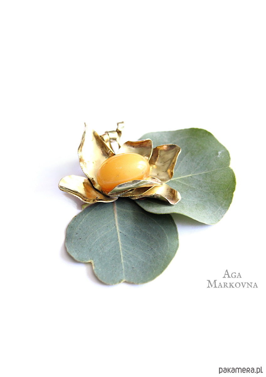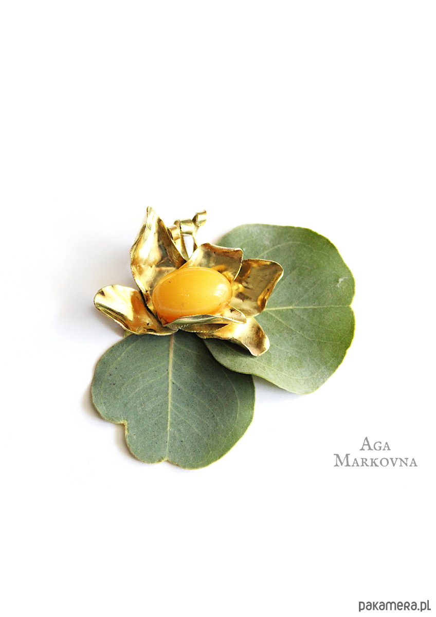 Broszka mosiężna "Kwiat" z Bursztynem Bałtyckim