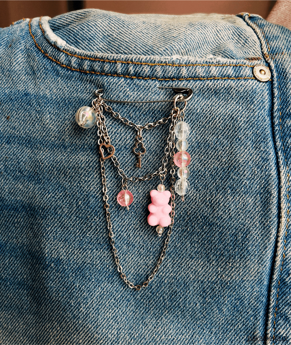Broszka wykonana ręcznie na bazie klasycznej agrafki.