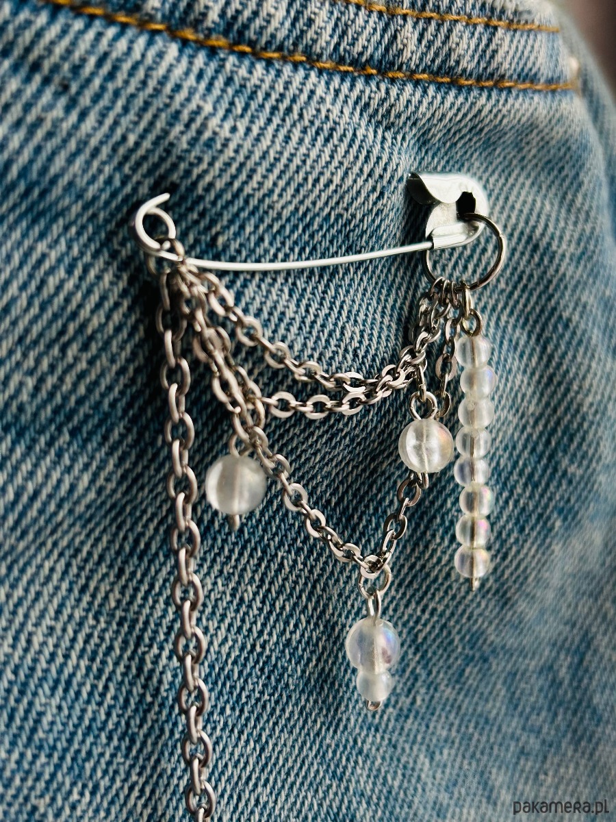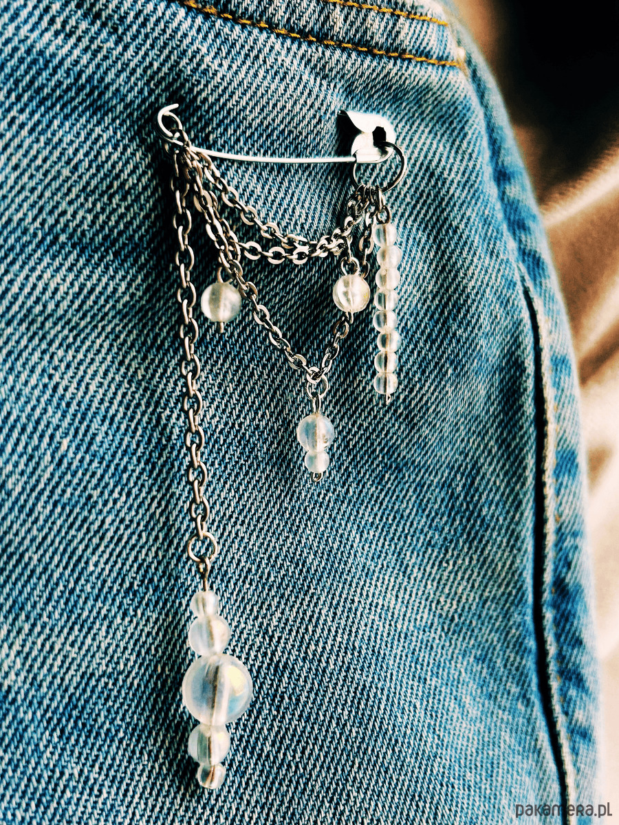 Broszka wykonana ręcznie na bazie klasycznej agrafki.